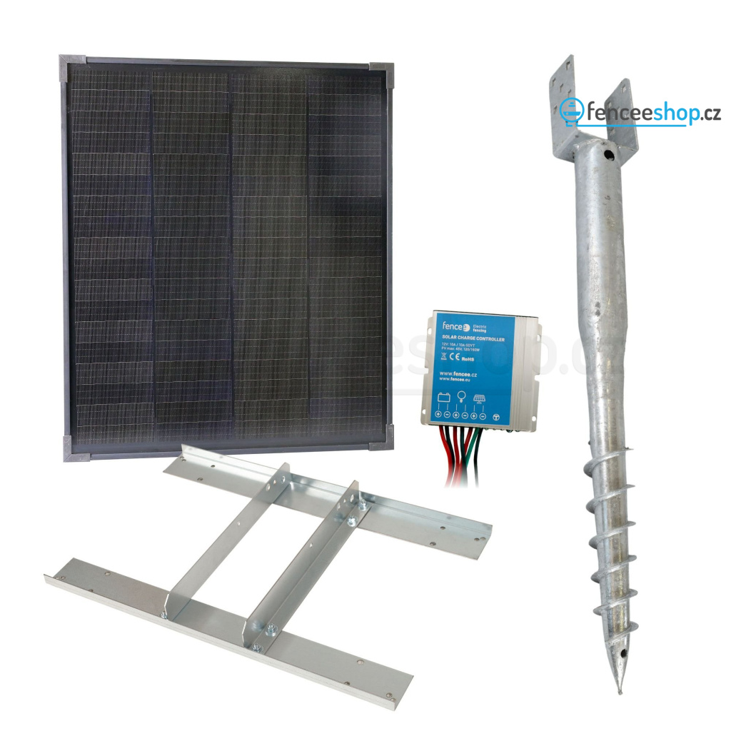 Solární systém pro napájení elektrického ohradníku. Vhodné pro kombinované generátory fencee s výkonem 0,3 - 3 J. Obsahuje regulátor 10 A pro solární panel 40 W. Montážní konzole pro instalaci solárního panelu na džák zemní vrut. Solární dobíjení ohradníku. Více informací