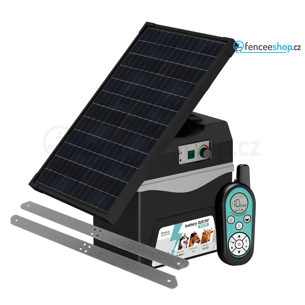 Na bateriový zdroj lze připojit solární panel s výkonem 30 W, který zajistí nepřetržitý provoz. S možností solárního dobíjení elektrického ohradníku získáte energeticky soběstačný systém, který lze provozovat i v odlehlých oblastech. Panel je upevněn pomocí montážní konzole a lze polohovat směrem ke slunci podle potřeby.