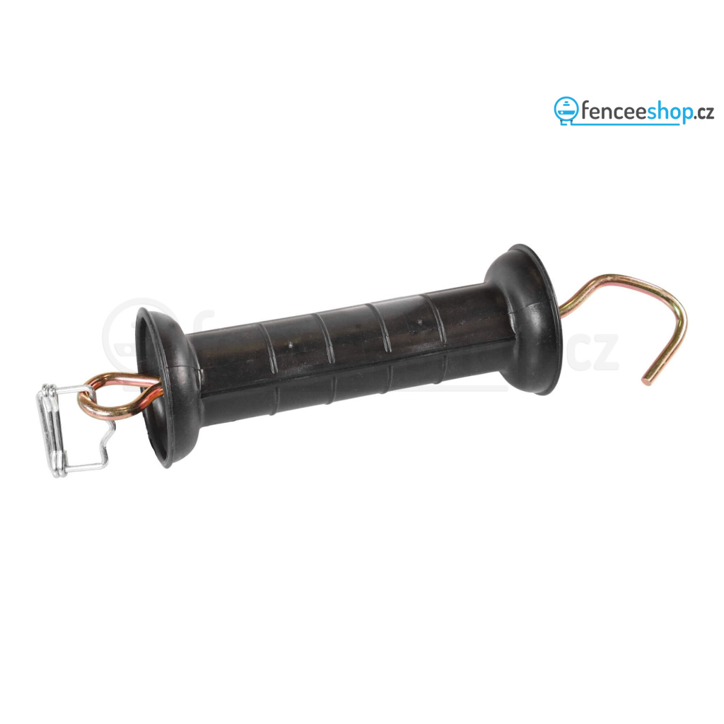 Bránová rukojeť pro elektrický ohradník se spojkou pro pásku do šířky 20 cm. Odolnost vůči UV a povětrnostním vlivům. Pro brány, příčky, padoky. Pozinkovaný závěsný hák. Více informací