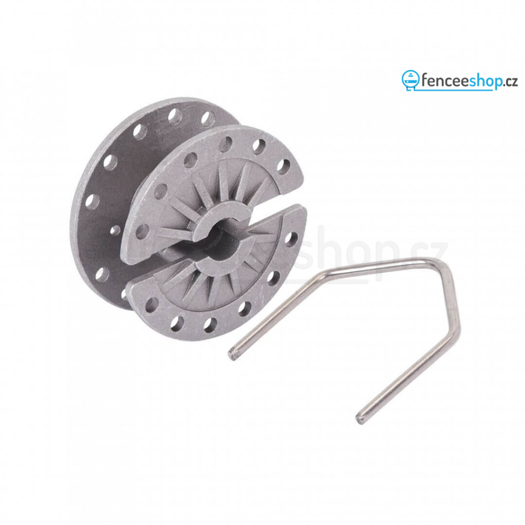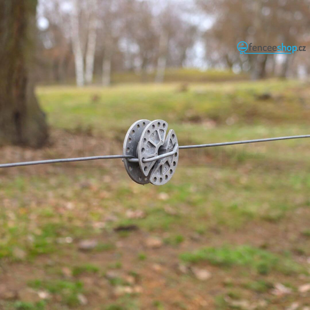 Pozinkovaný bubínkový napínák vodičů pro elektrické ohradníky. Otočný. Umožňuje rychlé utáhnutí/uvolnění drátu, lanka, ocelového lanka, jehož délka se mění podle současné teploty. Více informací
