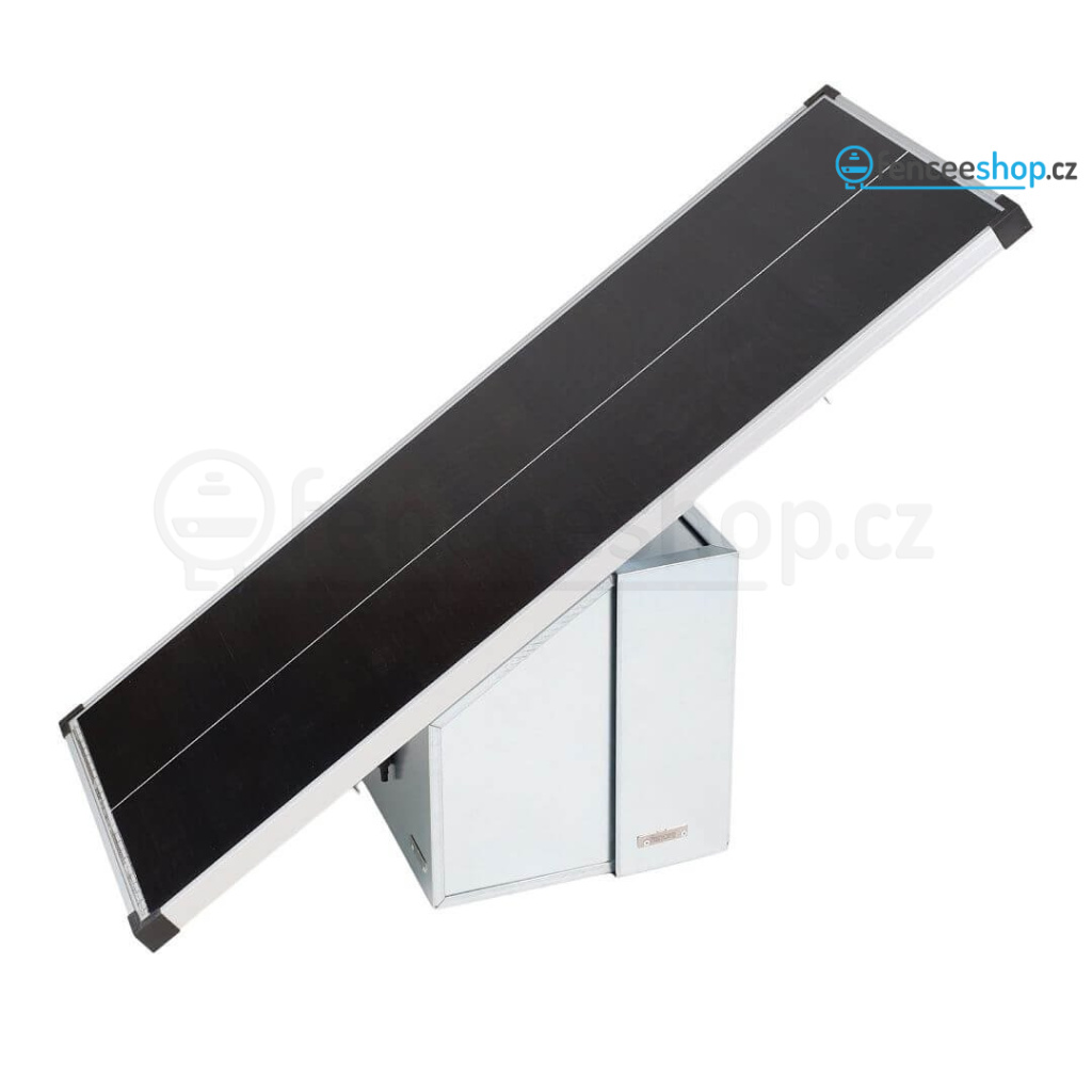 Sada solárně napájeného ohradníku s kombinovaným zdrojem 230/12 V o výkonu 4 J. Obsahuje kompletní bezpečnostní schránku na zdroj ohrady a baterii s regulátorem 10 A pro solární panel 100 W. Montážní konzole pro instalaci panelu na schránku, kterou lze elektrifikovat. K otevírání slouží 2 ks izolovaných klíčů. Součástí schránky je bezpečnostní trn. Zemnící tyč a ohradníková síť s výškou 90 cm pro ovce, kozy. Více informací