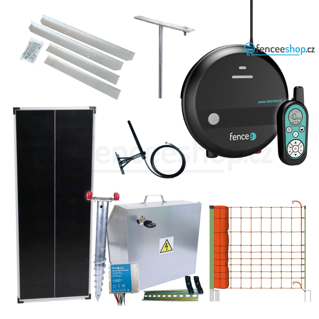 Praktické řešení pro provoz ohradníku na místech bez elektřiny během sezóny. Sada ohradníku se solárním napájením vhodná pro elektrické ohrady se zvýšenou ochranou stáda proti vlkům, predátorům.