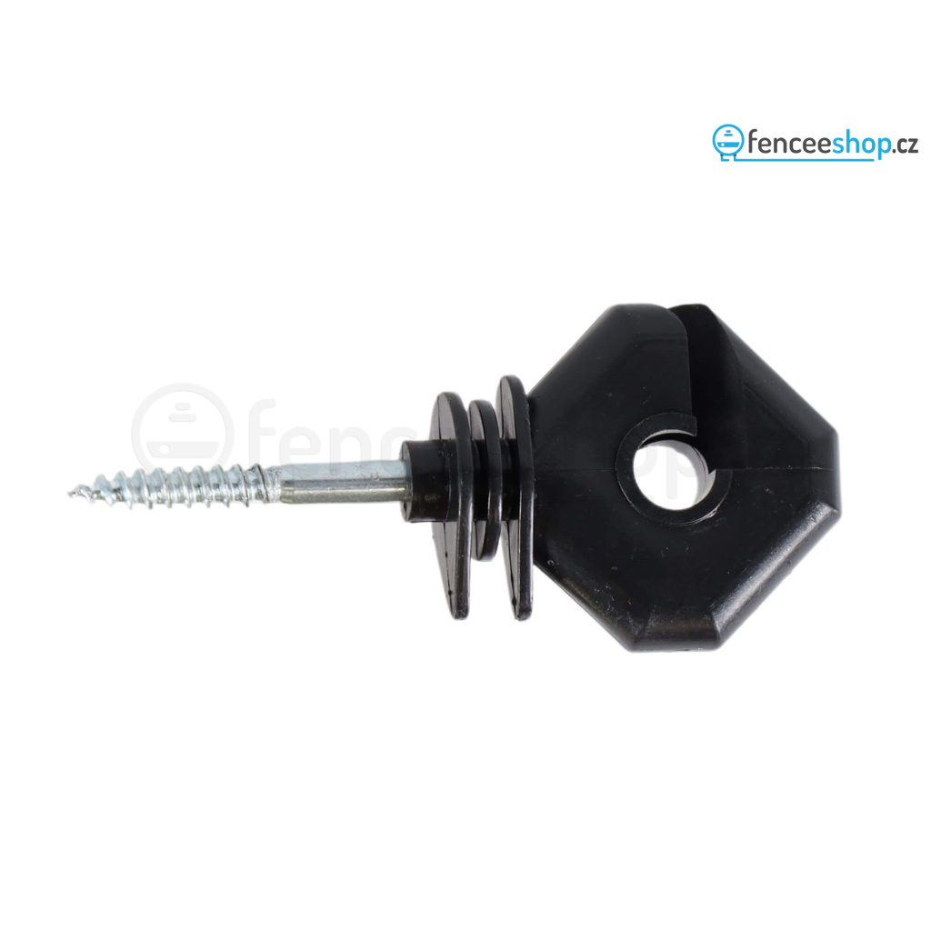 Plastový hranatý izolátor s vrutem určen pro lanka, lana a dráty. Závit 6 mm. Tři odkapávací výstupky zaručují odolnost proti vlhkosti. Vhodný je pro průběžné, rohové použití, ale i na začátek ohrazení. Délka závitu 3 cm. Více informací