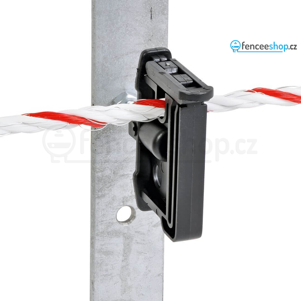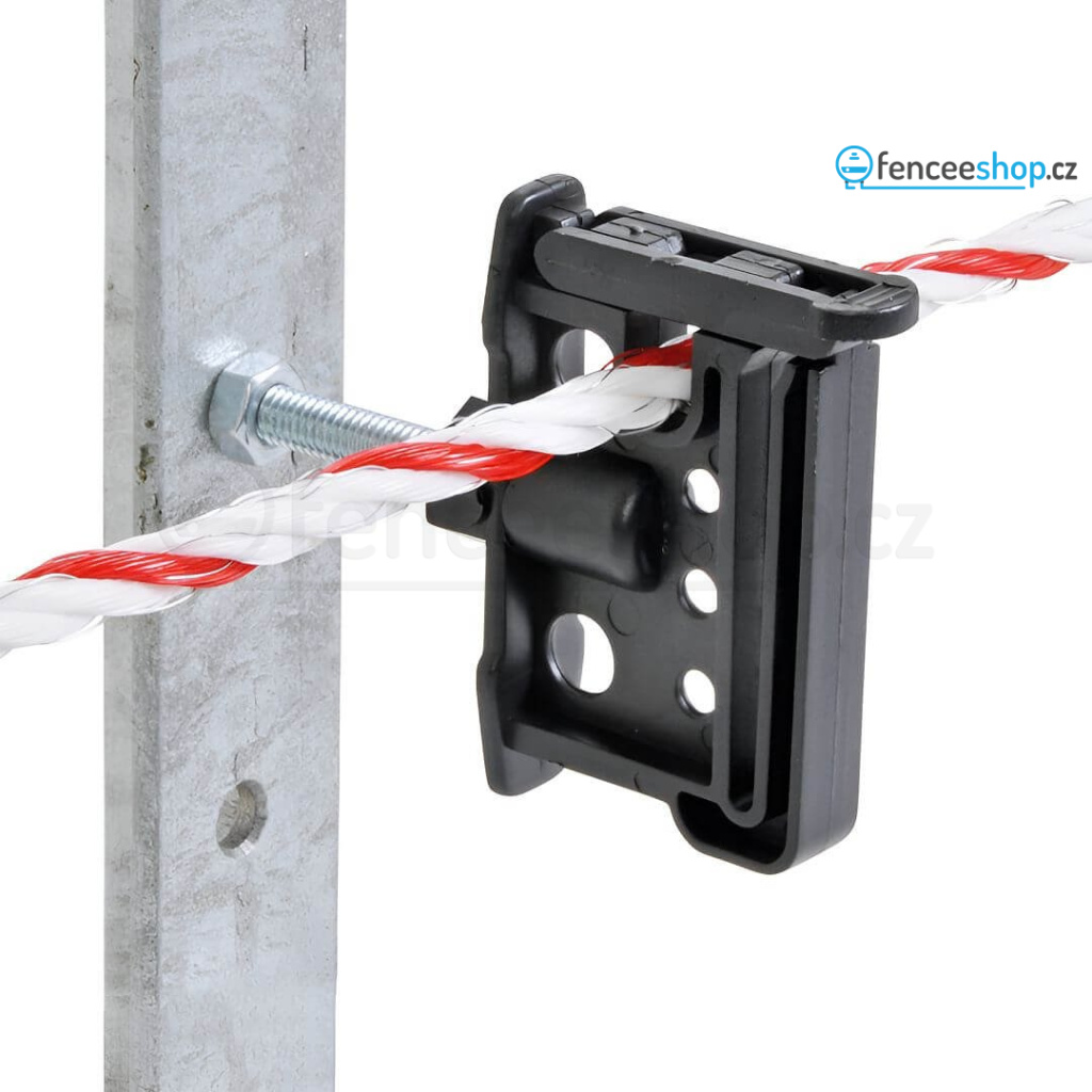 Univerzální izolátor k elektrickému ohradníku s metrickým závitem M6. Izolátor vhodný pro připevnění na kovové sloupky. Konstrukčně velmi povedený. Zacvakávací pojistka zabraňuje vyklouznutí vodiče z izolátoru. Více informací