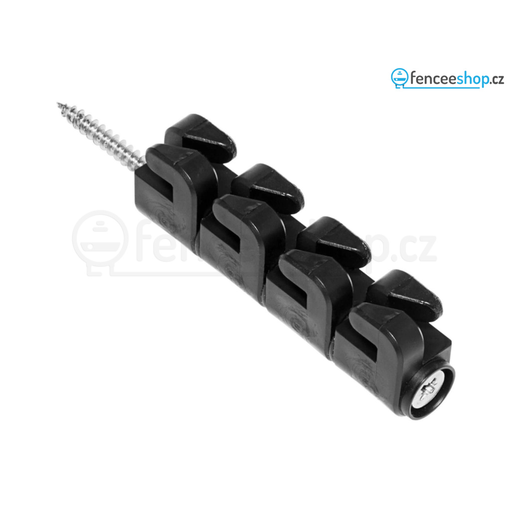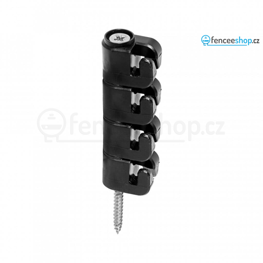 Izolátor s nerezovým vrutem na elektrický ohradník proti škůdcům se 4 očky. Slouží k zamezení přístupu zvířat, která rádi šplhají. Plus-Mínus vedení vodičů bez zemnění - k impulsu dochází pří propojení alespoň dvou souběžně vedených vodičů. Více informací