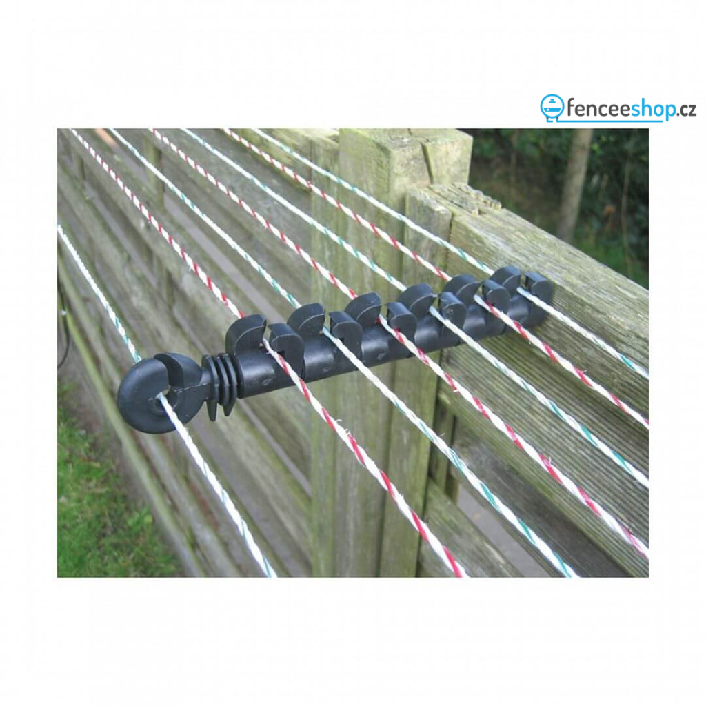 Izolátor na elektrický ohradník proti škůdcům s 8 očky. Plus-Mínus vedení vodičů bez zemnění - k impulsu dochází pří propojení alespoň dvou souběžně vedených vodičů. Slouží k zamezení přístupu zvířat, která rádi šplhají. Více informací