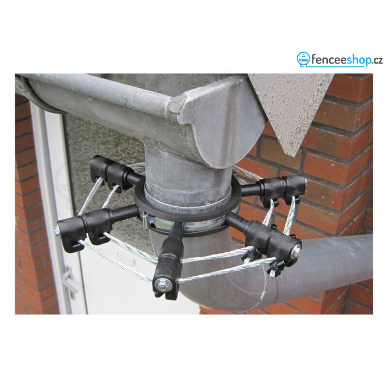 Efektivní a spolehlivá ochrana proti kunám a jiným škůdcům. Izolátor se připevňuje přímo ke svodu okapu o průměru 102 - 106 mm. Je speciálně určený pro tzv. Plus - Mínus vedení drátů.