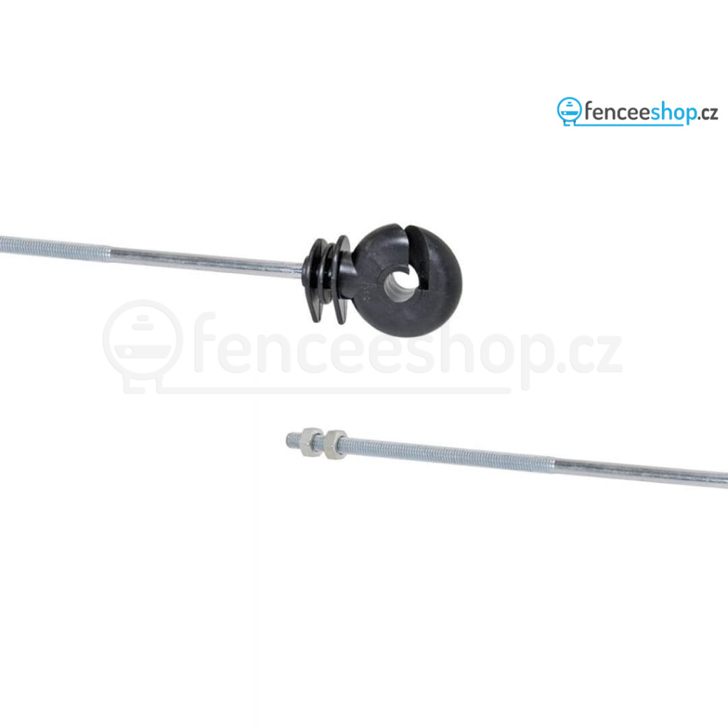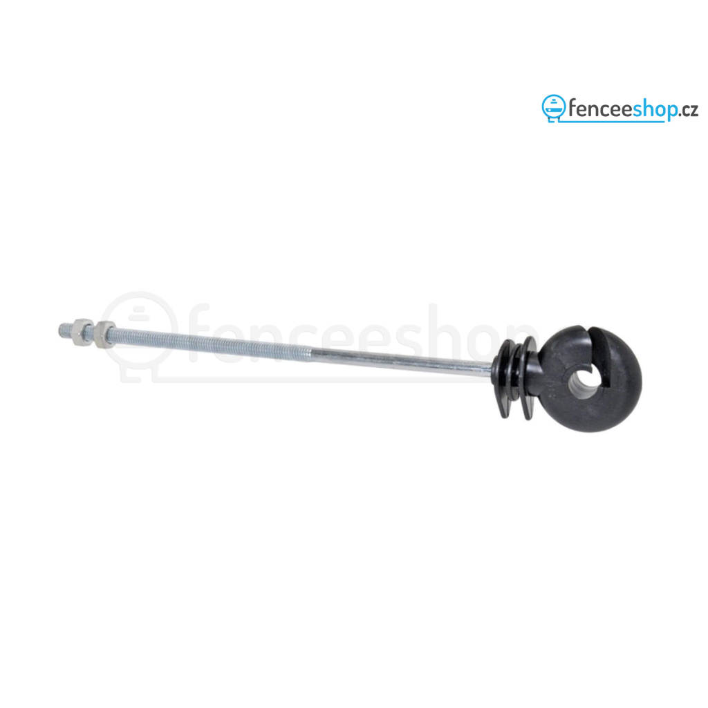 Distanční kruhový izolátor s dlouhou podpěrou 20 cm a metrickým závitem M6 (10 cm). Vhodný pro dráty, lanka, lana a pásky do 10 mm. Pro předsazenou elektrickou ohradu. Hlava izolátoru z odolného plastu. Tři odkapávací výstupky. Balení po 10 ks. Více informací