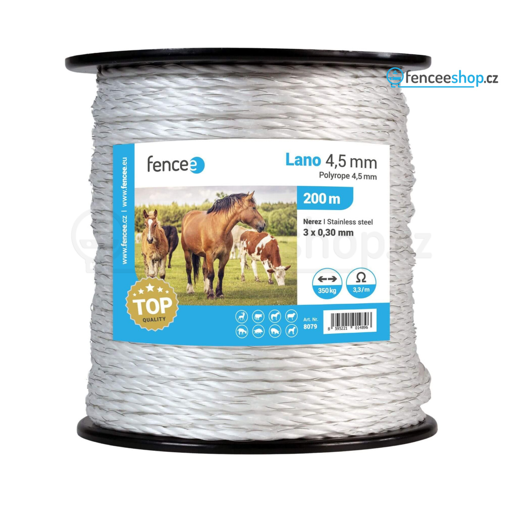 Lano vyrobené z polypropylenu. Je pevné a zároveň pružné. Mimo pastevní období lze snadno smotat a uskladnit.