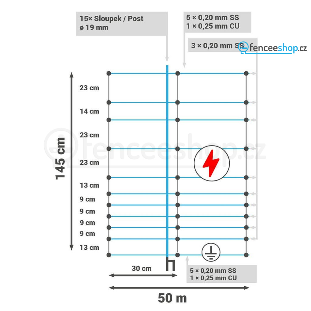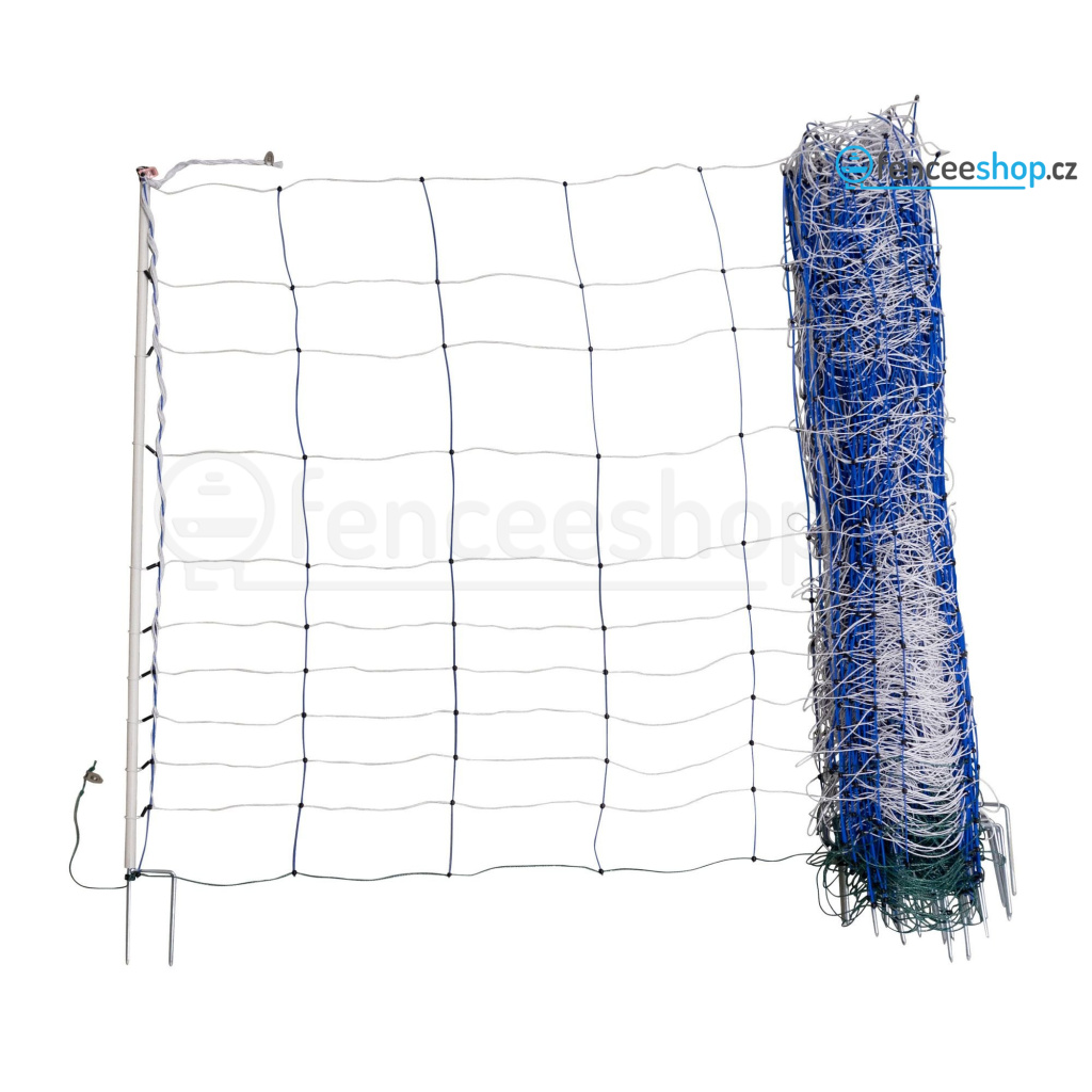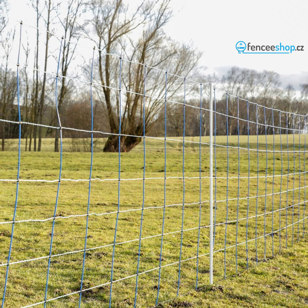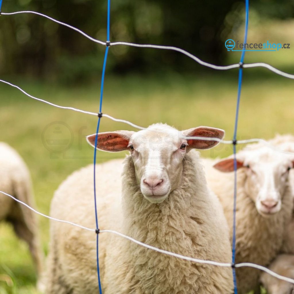 Vysoká modrá síť pro elektrický ohradník proti vlkům pro bezpečnost a ochranu stáda. Volitelně připojitelný zemnící vodič - pro dodatečné uzemnění. Zesílený horní drát 5 nerez + 1 pocínovaný měď vodič. Výborná stabilita díky vertikálním plastovým vzpěrám, 15 zesílených tyčí Ø 19 mm s dvojitým hrotem. Vhodná pro ovce a jehňata. Více informací