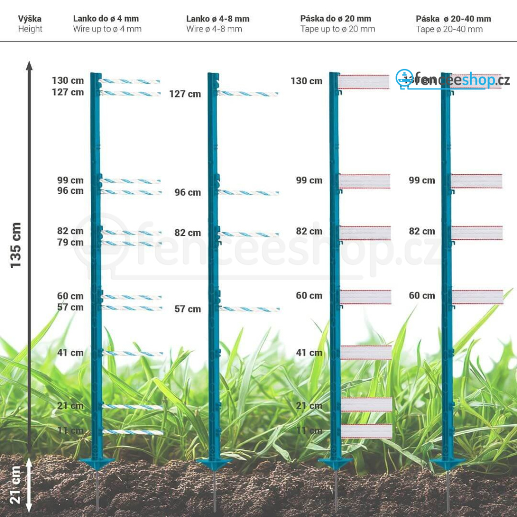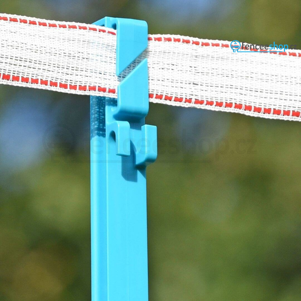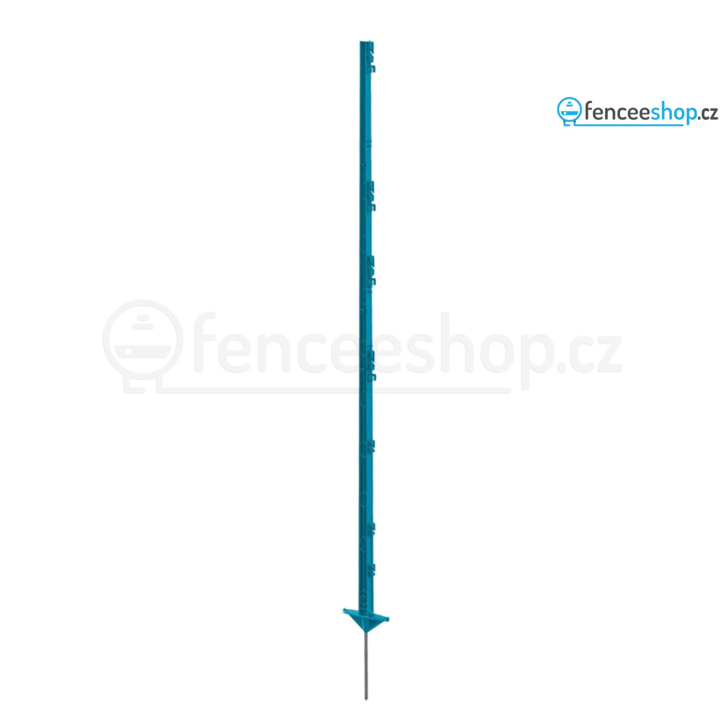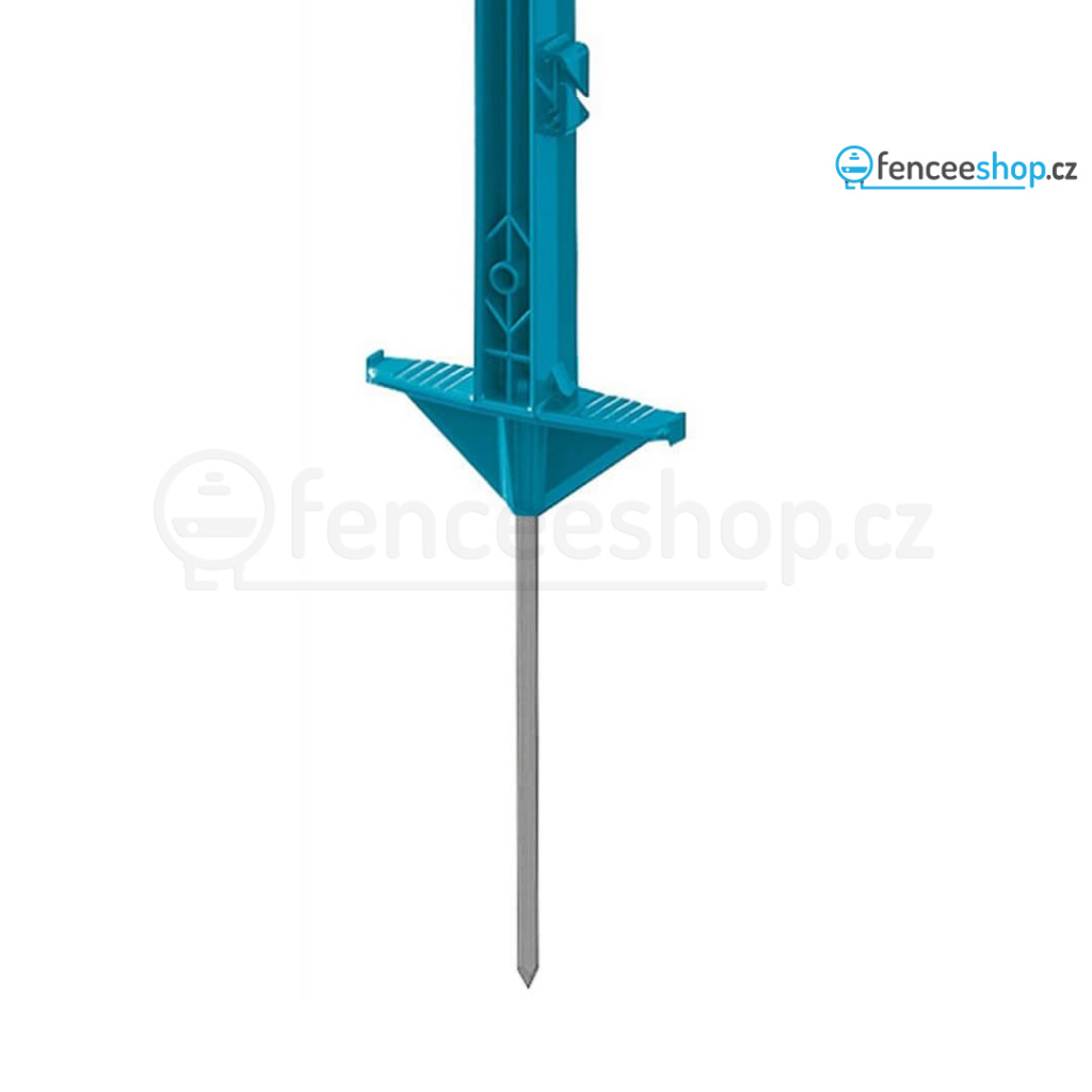 Mobilní plastový sloupek s dvojitým nášlapem pro elektrický ohradník v modré barvě s 11 očky pro běžné vodiče ohradníku. Vysoce kvalitní materiál s vyztužením ze skelných vláken a vysokou UV stabilitou je odolný proti ohýbání a zlomení. Robustní kovová špice. Celková výška sloupku 156 cm, výška nad zemí 135 cm. Více informací