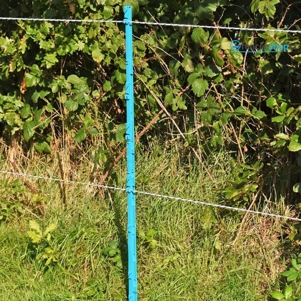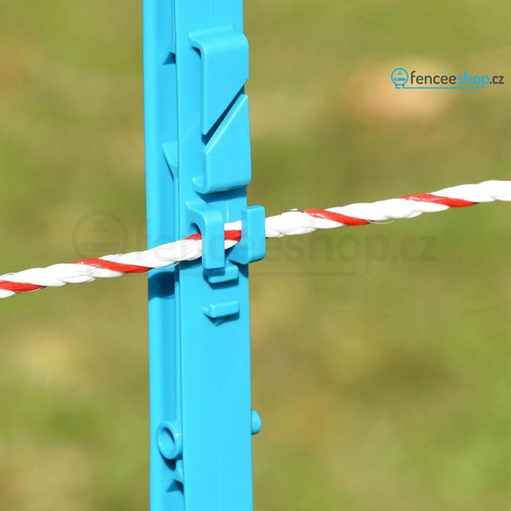 Kvalitní plastová tyčka pro elektrický ohradník s 11 očky je univerzálním řešením pro elektrické ohradníky. Výrazná modrá barva je stylovým doplňkem vaší elektrické ohrady. Využití najde při ohrazení větších zvířat, jako jsou poníci a koně, skot nebo také jako ochrana proti zvěři. Díky vyztužení materiálu ze skelných vláken je robustní a odolná proti praskání, ohýbání a kroucení. Pomocí silné ocelové špice a dvojitým nášlapem se snadno instaluje na zvolené místo.