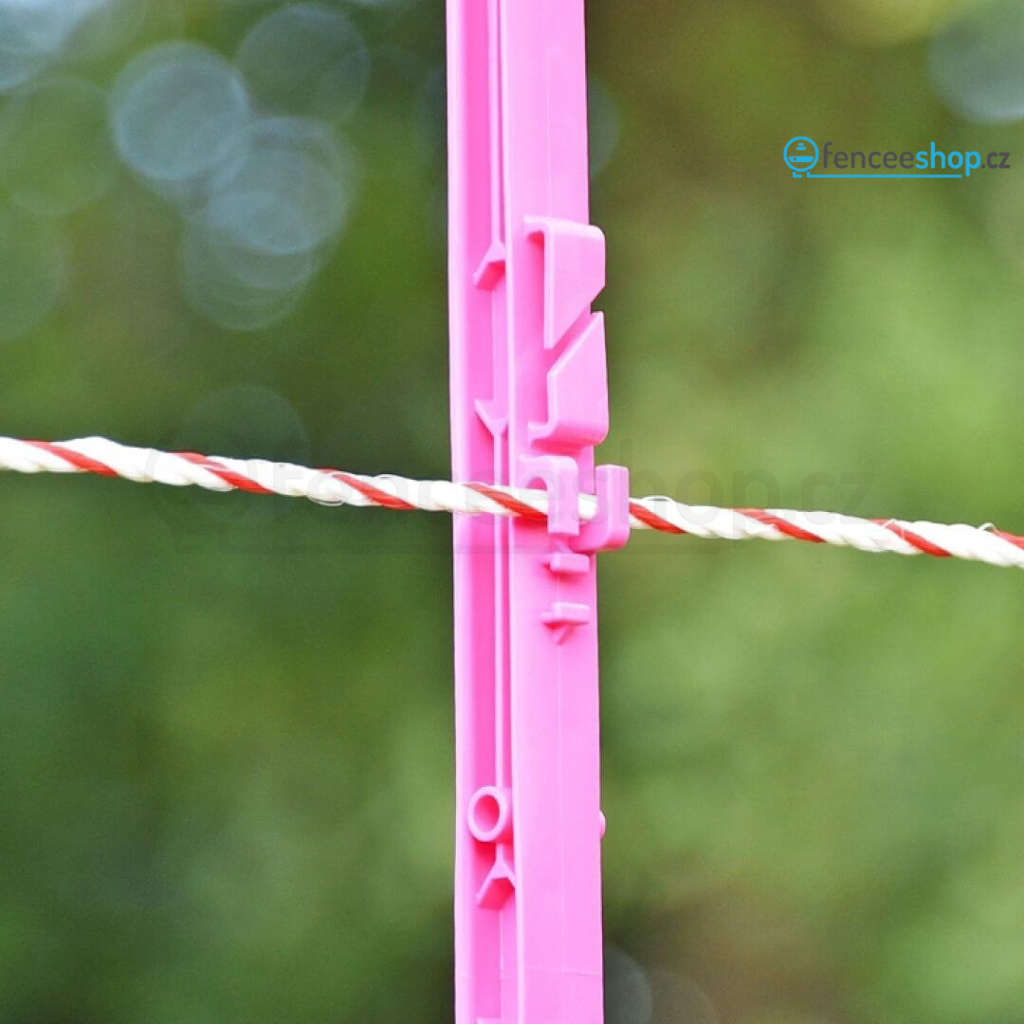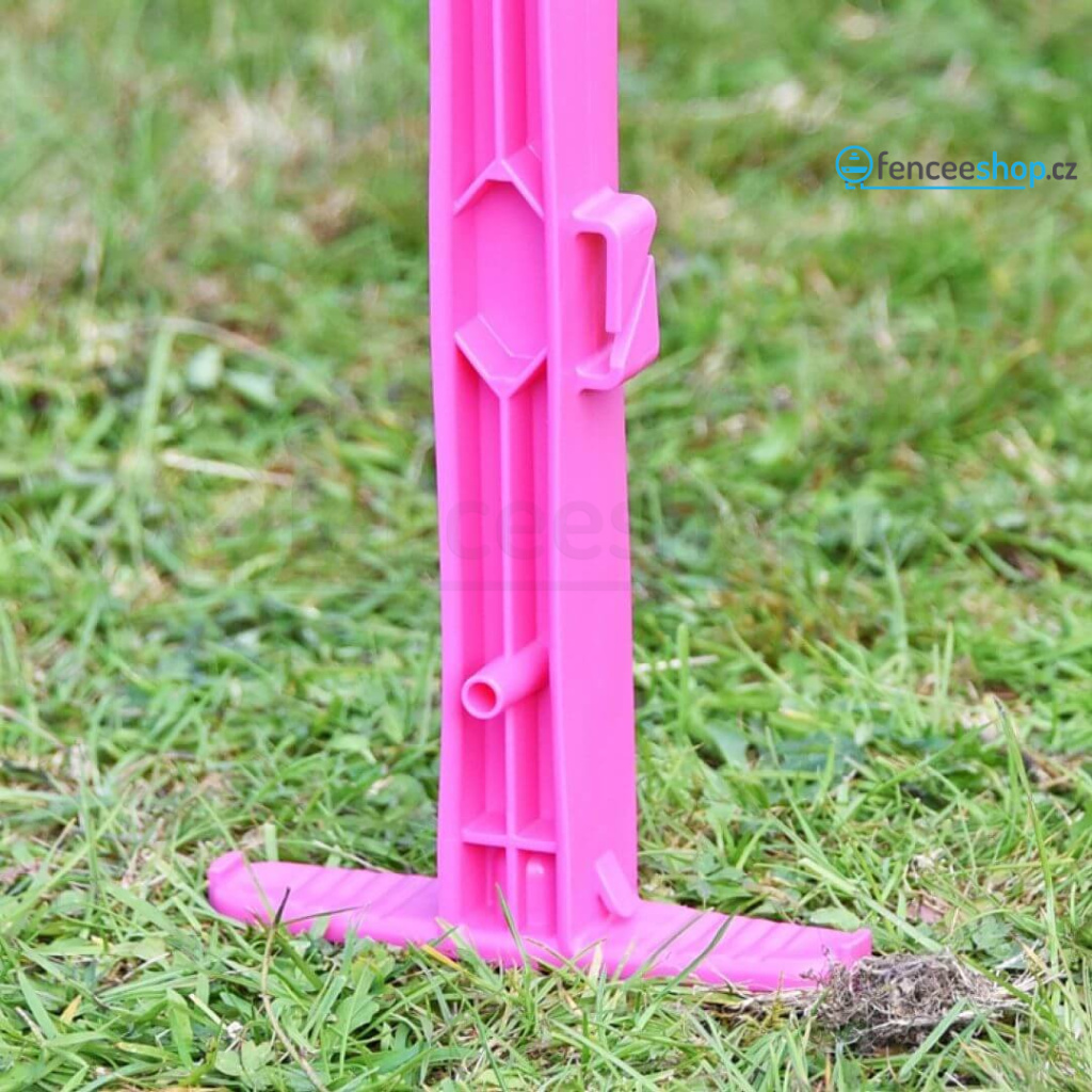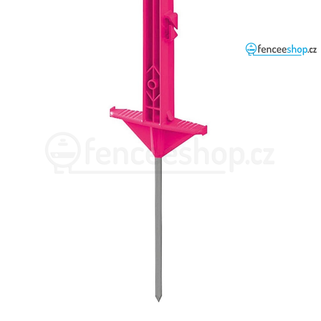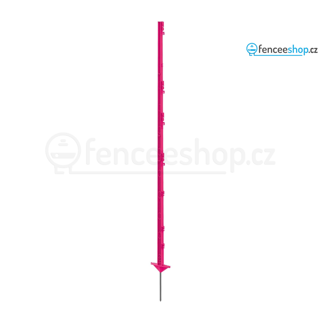 Atraktivní růžový plastový sloupek pro elektrický ohradník s 11 očky je univerzálním řešením pro elektrické ohradníky. Stane se stylovým doplňkem vaší elektrické ohrady. Využití najde při ohrazení větších zvířat, jako jsou poníci a koně, skot, kozy. Je robustní a odolný proti ohýbání a kroucení. Silná železná špice a dvojitým nášlapem.