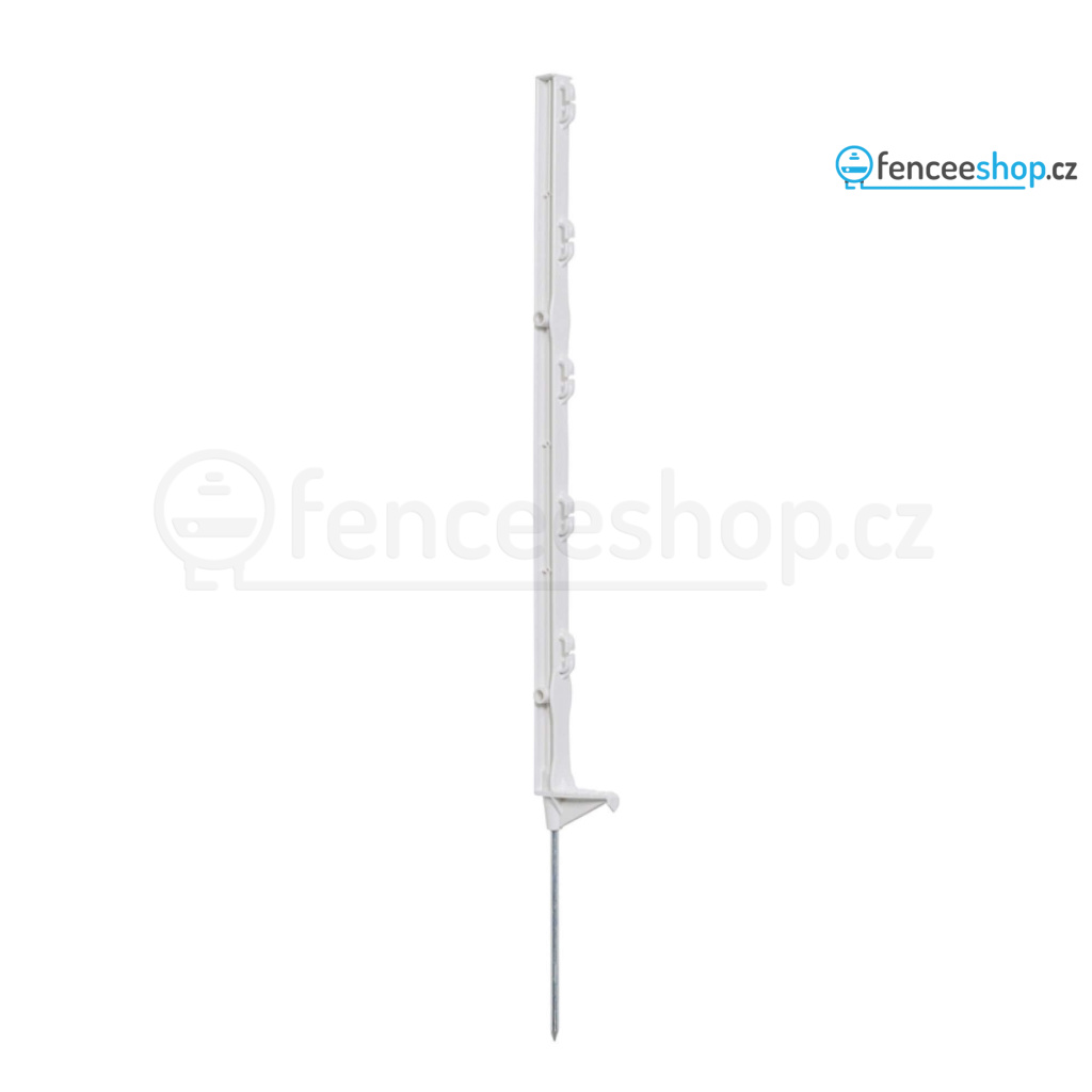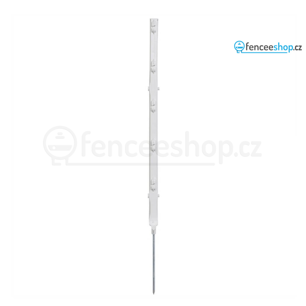 Kvalitní sloupek s jednoduchým nášlapem pro elektrický ohradník v bílé barvě s 5 očky. Materiál s příměsí ze skelných vláken a vysokou UV stabilitou je odolný proti zlomení. Robustní kovová špice. Celková výška sloupku 70 cm, výška nad zemí 52 cm. Více informací