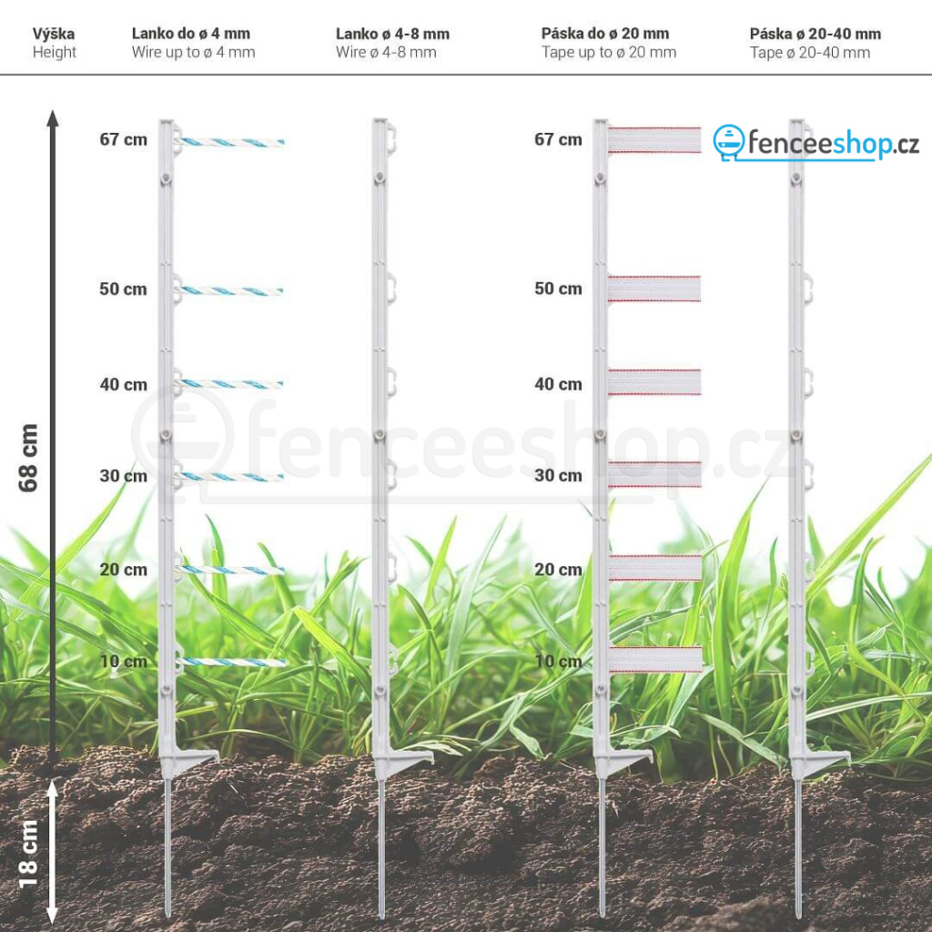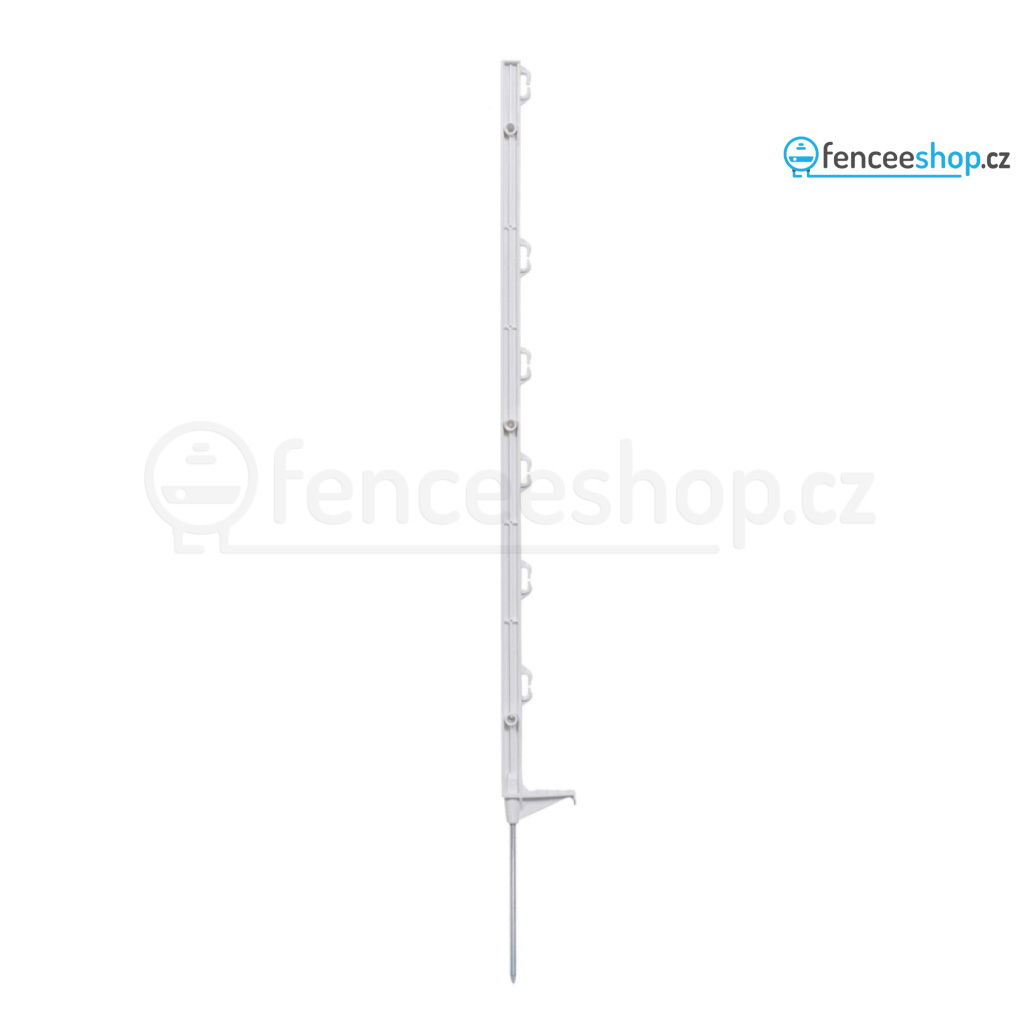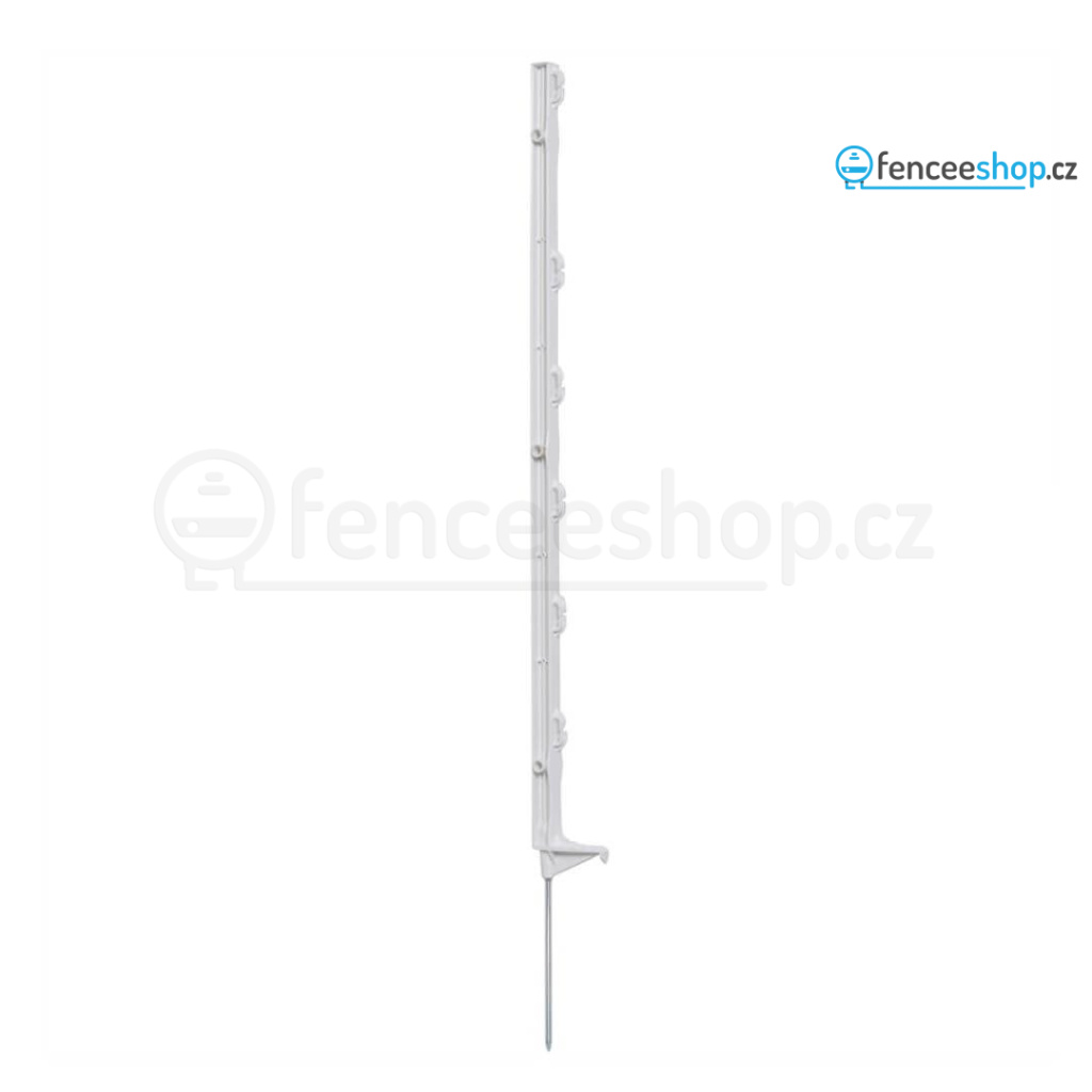 Univerzální sloupek s jednoduchým nášlapem pro elektrické ohradníky v bílé barvě s 6 očky. Kvalitní materiál s robustní ocelovou špicí a vysokou UV stabilitou je odolný proti zlomení. Celková výška sloupku 86 cm, výška nad zemí 68 cm. Více informací