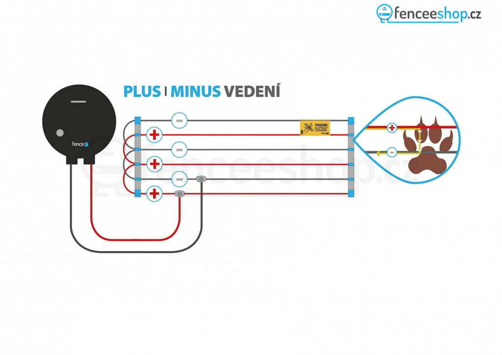 Vodiče elektrického ohradníku jsou vedeny souběžně vedle sebe (Plus-Mínus) a k impulsu dochází při jejich propojení. Vzdálenost mezi vodiči je nutné zvolit tak, aby nemohlo zvíře proniknut mezi dráty, aniž by se dotklo obou vodičů současně. Vhodné zejména pro ochranu vašeho domova a zahrady před různými škůdci.