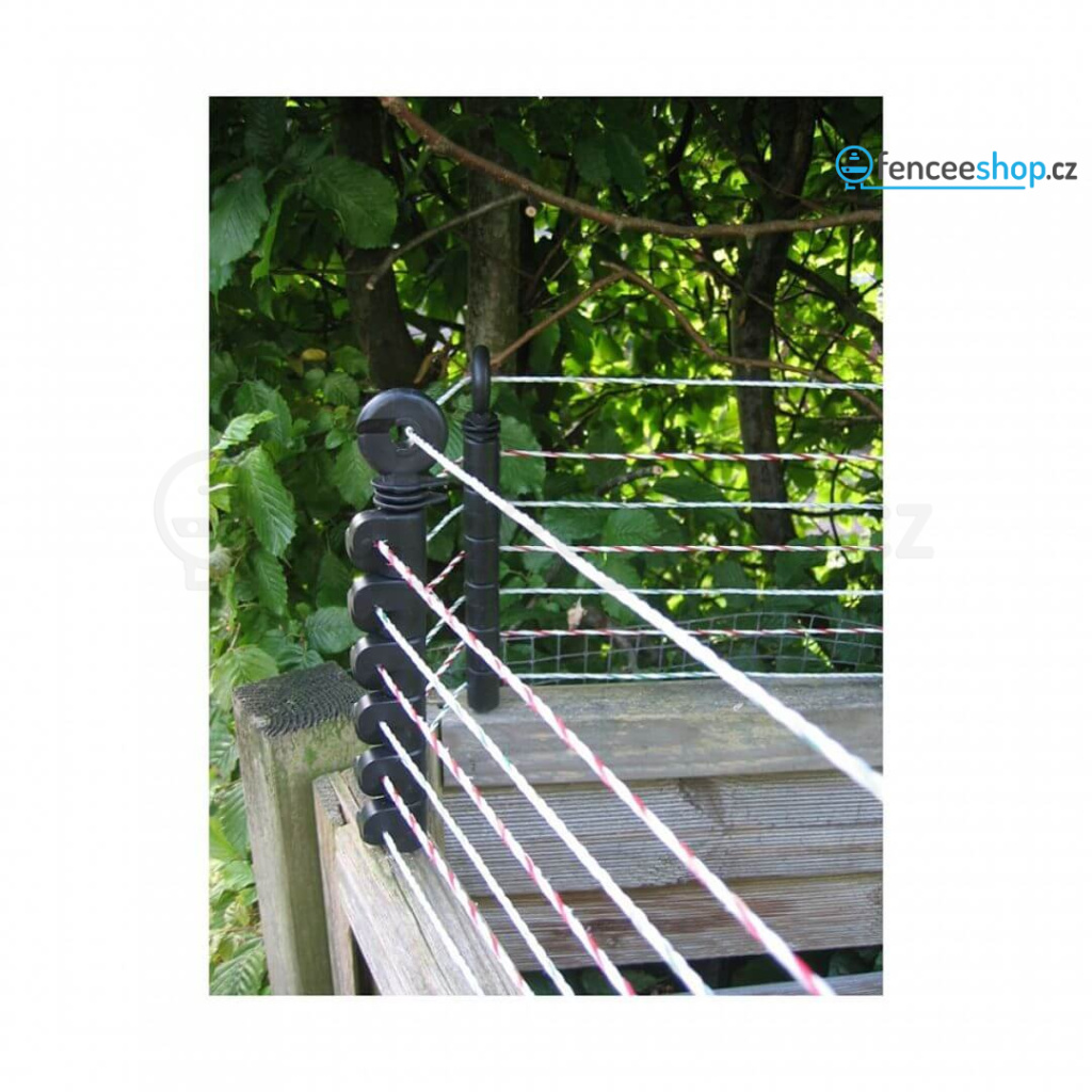 Našroubujte speciální izolátory elektrického ohradníku proti škůdcům na plot podle své potřeby. Pro instalaci elektrického ohradníku s vedením Plus–Mínus, tzv. bez zemnění.