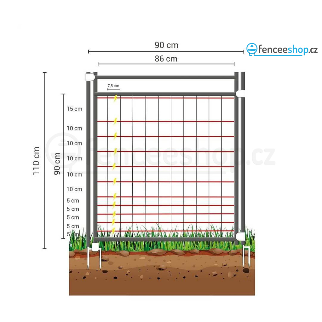 Kompletní sada elektrického ohradníku se sítí je velmi jednoduchá na zprovoznění a přemisťování. Ke stavbě mobilního výběhu s elektrickou sítí nepotřebujete žádné nářadí. Součástí sady je i zemnící tyč.