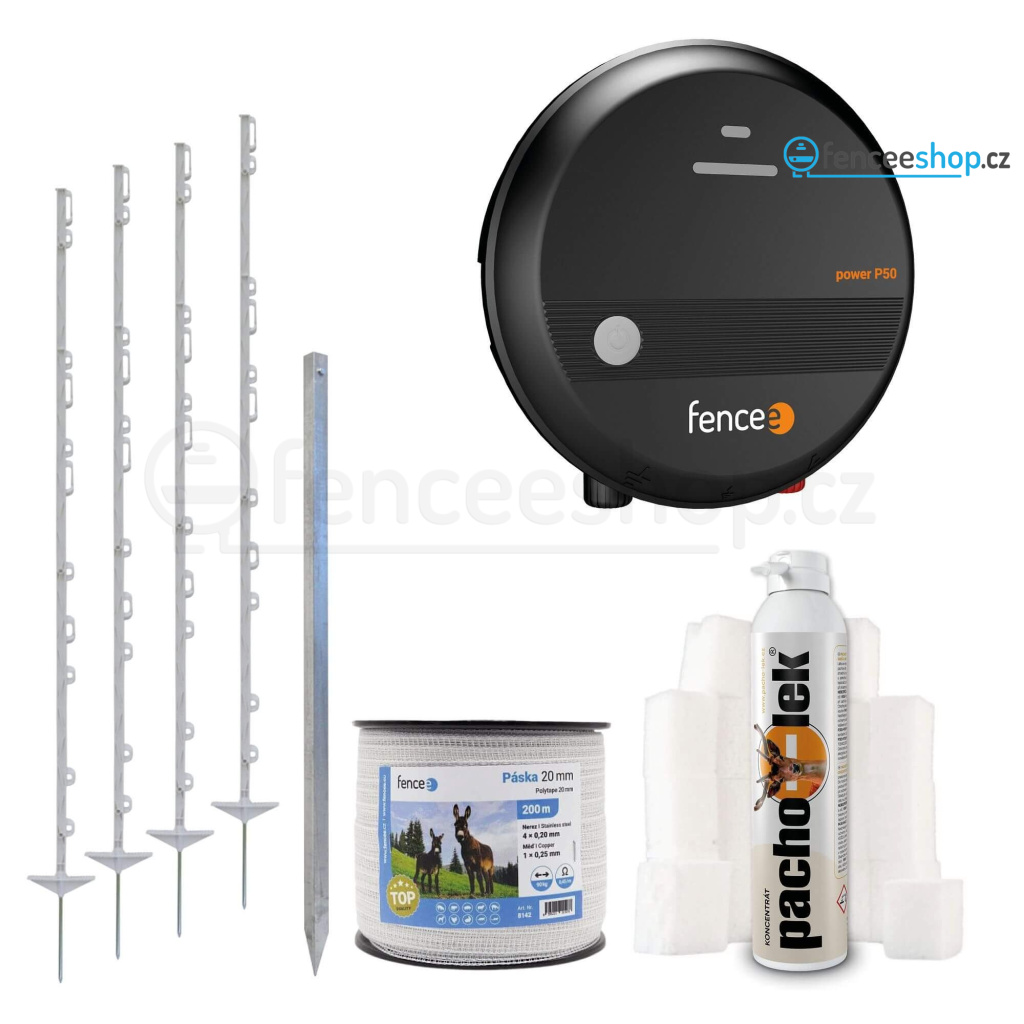 Speciální sada pachového a elektrického ohradníku pro zajištění 100% ochrany úrody proti daňkům, jelenům, muflonům, srnkám. Funkční pomůcka v boji proti vytloukání, okusu dřevin, loupání kůry, ničení úrody. Bezúdžbový síťový generátor fencee power P50 s výkonem 5 J. Kvalitní bílá paska 20 mm s měďěným vodičem pro lepší vodivost. Plastové sloupky pro ohrazení do výšky až 136 cm nad zemí. Zemnící tyč. Více informací