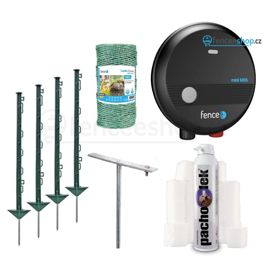 Speciální sada pachového a elektrického ohradníku pro 100% ochranu vodní plochy proti vydrám. Elektrický ohradník spolu s pachovým odpuzovačem je nejefektivnějším způsobem, jak chránit chovné rybníčky, sádky a jezírka. Síťový generátor fencee mini M06 s výkonem 0,6 J. Diskrétní zelené lanko ø 2,5 mm v 100m návinu. Nenápadné zelené sloupky s celkovou délkou 74 cm (56 cm nad zemí). Více informací