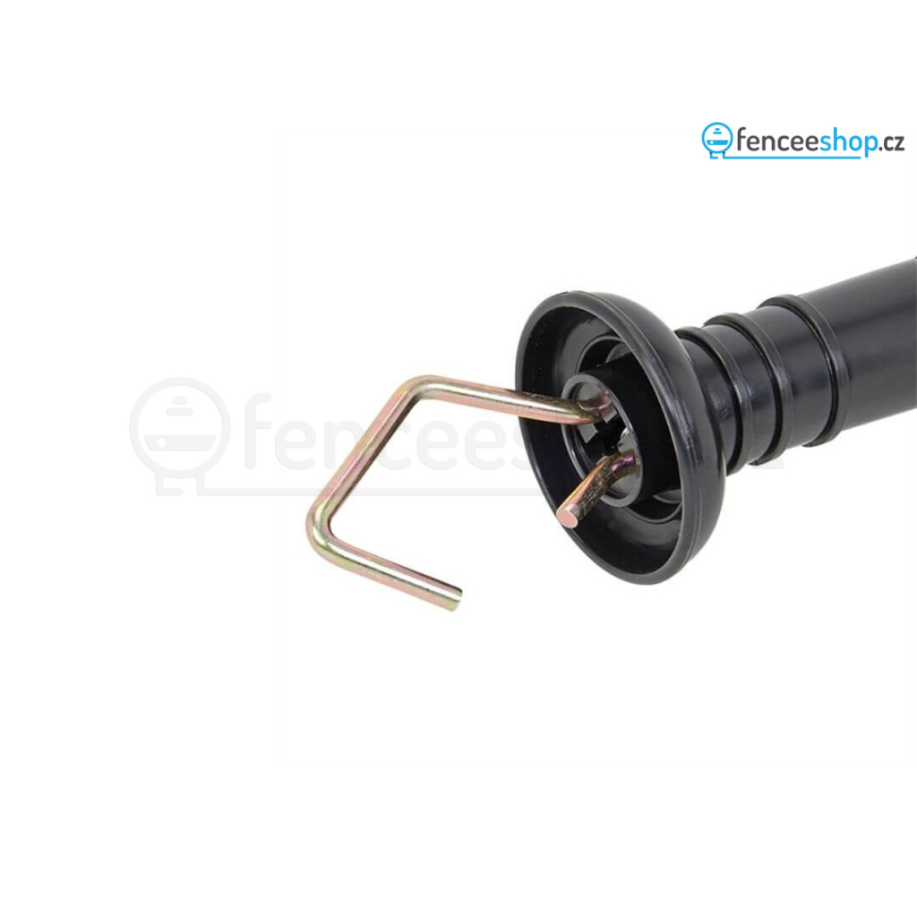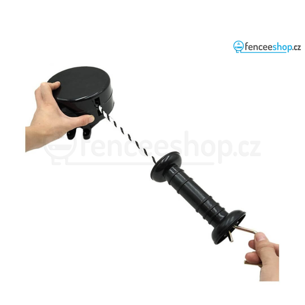 Praktické, jednoduché a bezpečné řešení vchodu do elektrické ohrady. Při otevíraní/zavírání se vodivé lano elektrického ohradníku automaticky svine. Pružina z nerezové oceli.
