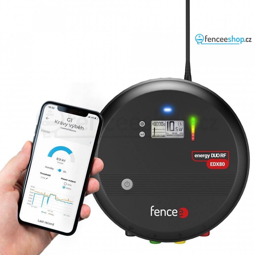 Sada chytrého elektrického ohradníku s RF generátorem energy DUO RF EDX120 s výkonem 12 J a centrální jednotkou FENCE WiFi GATEWAY GW100. Sada je připravená k okamžitému připojení na fencee Cloud a vzdálenému ovládání mobilním telefonem nebo z PC. Pro velmi dlouhé ohrady až 100 km. K této sadě dostanete kontrolní zařízení Monitor MX10 zcela zdarma - slouží pro měření napětí na ohradě a komunikaci s centrální Gateway. Obsahuje také praktický dálkový ovladač za zvýhodněnou cenu. Více informací