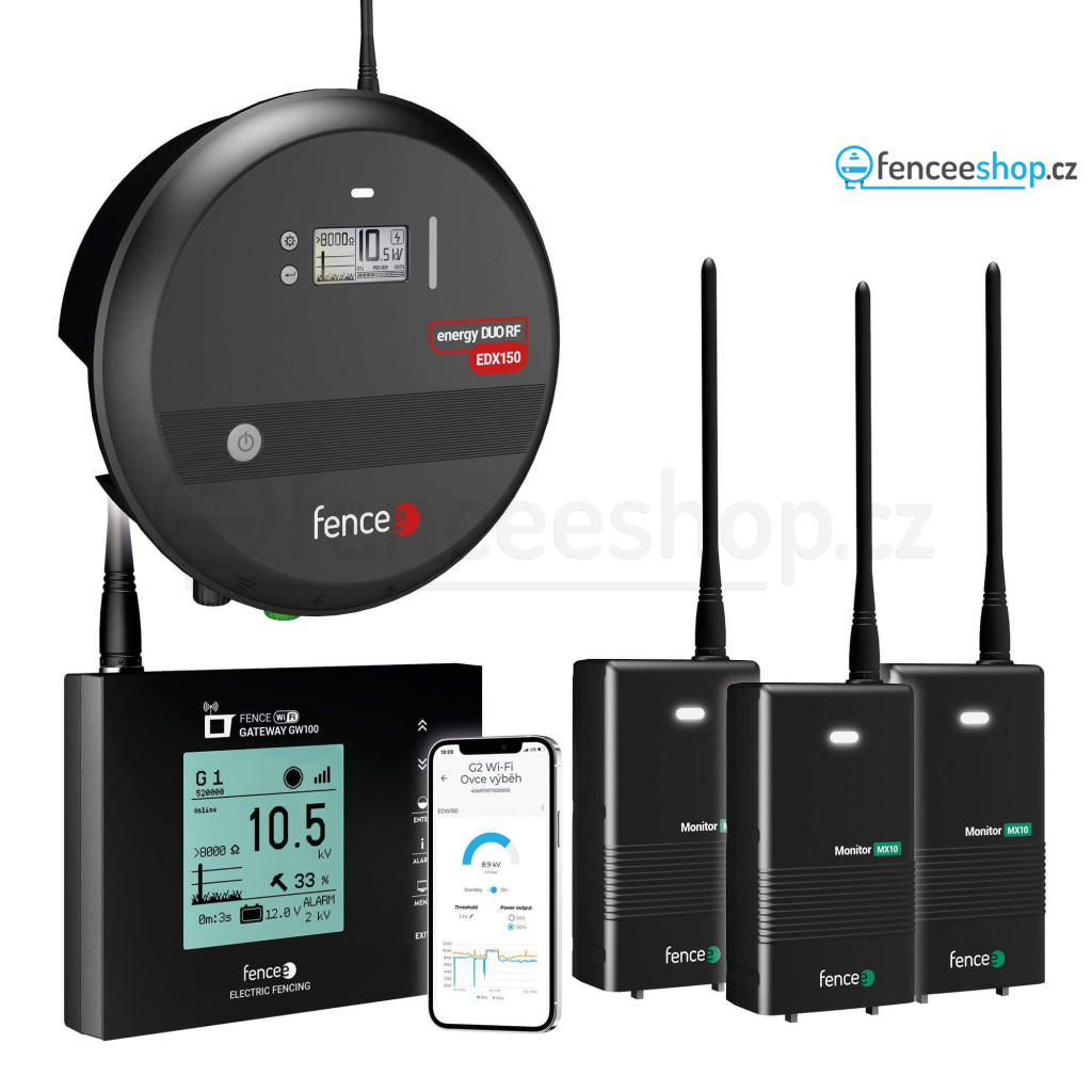 Kompletní sada chytrého elektrického ohradníku Moderní Chytré Farmy fencee pro připojení do aplikace fencee Cloud a následnou správu všech připojených RF zařízení pomocí mobilního telefonu, tabletu nebo počítače. Sledujte stav elektrického ohradníku pohodlně, odkudkoliv potřebujete. Součástí jsou 3 monitorovací zařízení kontrolní Monitory MX10, které měří a monitorují napětí v ohradě. Sada chytrého elektrického ohradníku se silným kombinovaným RF generátorem fencee energy DUO RF EDX150 je vhodným řešením i pro nejnáročnější ohrady do 120 km.