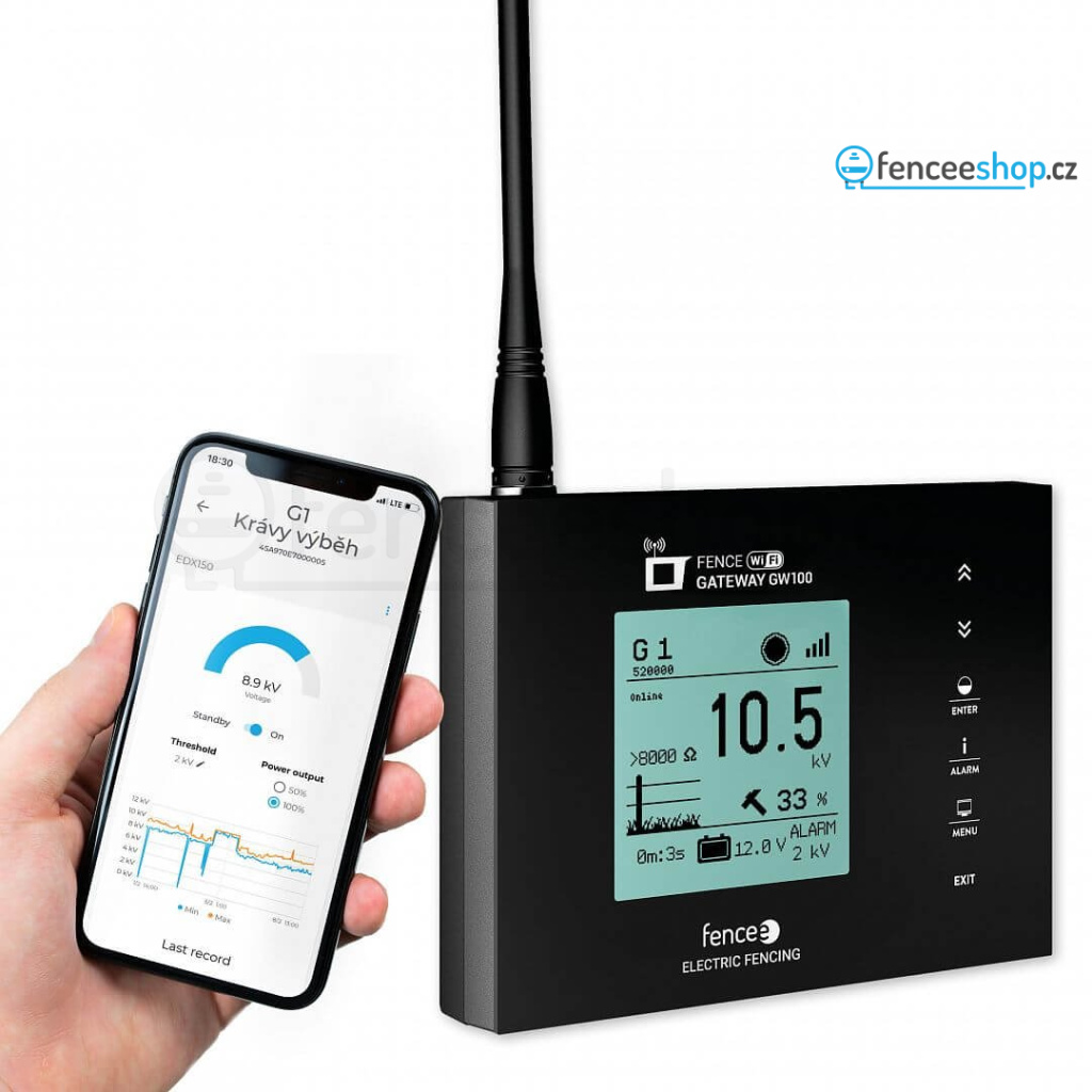 Sada chytrého elektrického ohradníku s RF generátorem a centrální zařízením FENCE WiFi GATEWAY GW100, které umožňuje okamžité připojení zařízení na fencee Cloud a ovládání vzdáleně mobilním telefonem, tabletem nebo počítačem. Obsahuje také praktický dálkový ovladač za zvýhodněnou cenu.