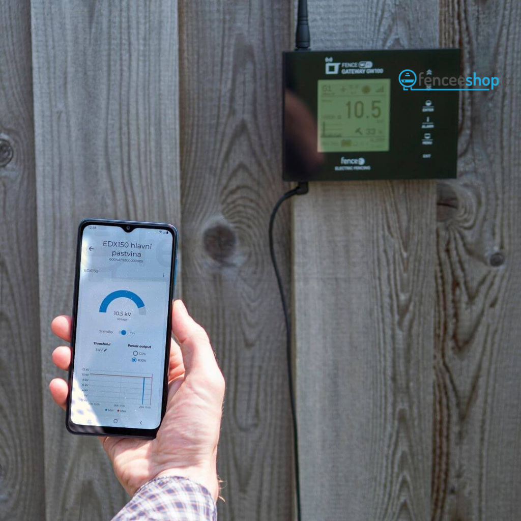 Sada chytrého elektrického ohradníku s RF generátorem a centrální FENCE WiFi GATEWAY GW100 umožňuje okamžité připojení zařízení na fencee Cloud a ovládání ohradníku odkudkoliv a kdykoliv pomocí mobilního telefonu, tabletu nebo počítače.