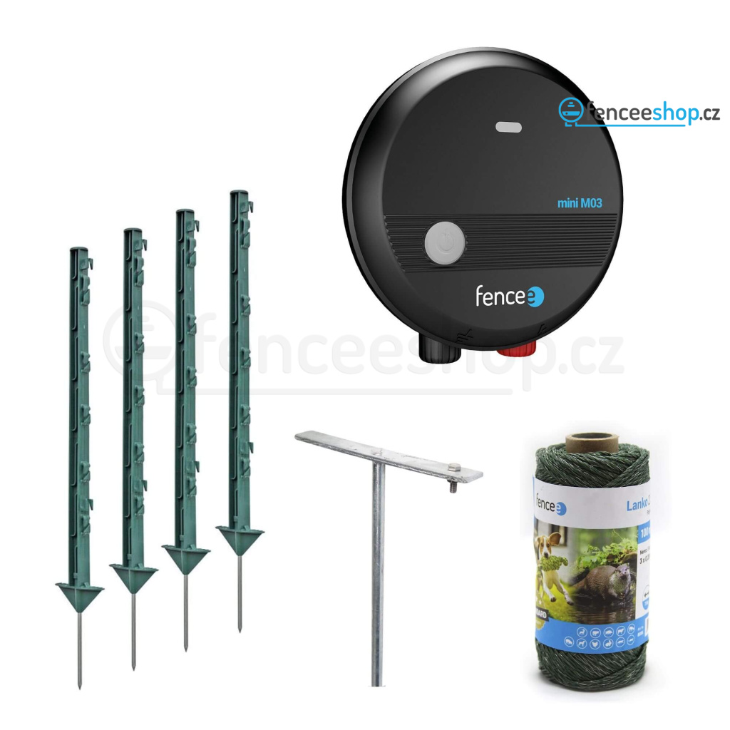 Set elektrického ohradníku určený na zahrady k rodinným domům, kolem zahrad, záhonků, bazénů nebo jezírek. Účinně ochrání a udrží vaše domácí mazlíčky, jako jsou štěňata, psi, kočky, králíky uvnitř vámi určeného prostoru. Elektrický ohradník může posloužit také jako ochrana záhonků a plodin, které se stávají terčem toulavých zvířat a drobných škůdců, jako jsou potkani nebo kuny. Síťový generátor fencee mini M03 s výkonem 0,3 J, je ideální pro krátké oplocení na zahradách a kolem domů s délkou instalace do 5 km.