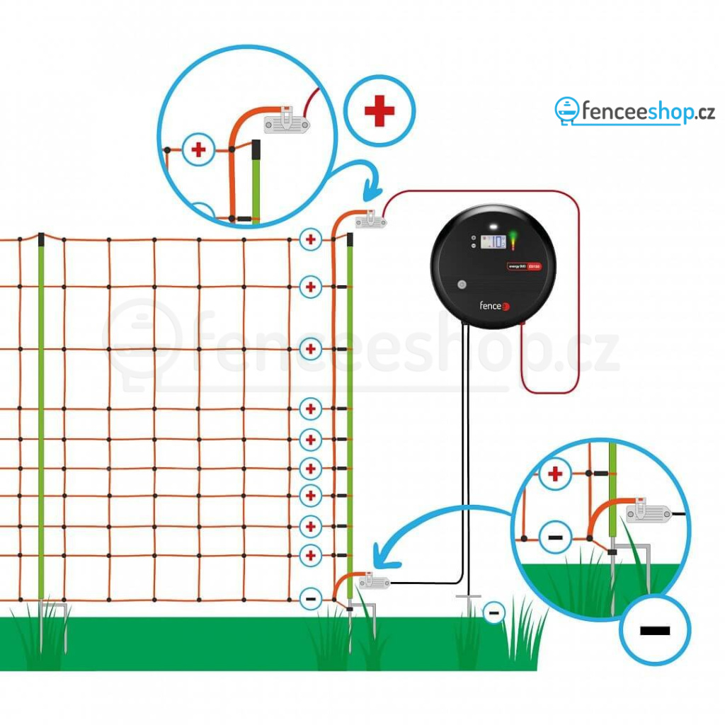 Sada elektrického ohradníku s vlčí sítí pro chovatele ovcí a koz. Obsahuje vše, co potřebujete k zabezpečení vašich výběhů se zvířaty před útokem vlka, rysa nebo zatoulaného psa.