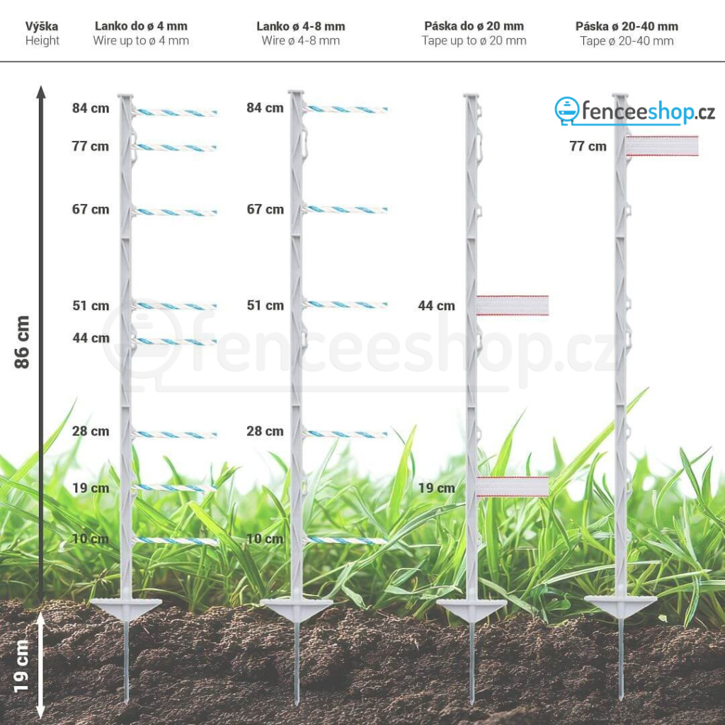 Univerzální plastový sloupek s 8 očky pro vymezení prostoru elektrického ohradníku. Délka 105 cm / nad zemí 86 cm. Obsahuje skleněná vlákna (odolnost proti zlomení). Velmi dobrý poměr ceny a výkonu.