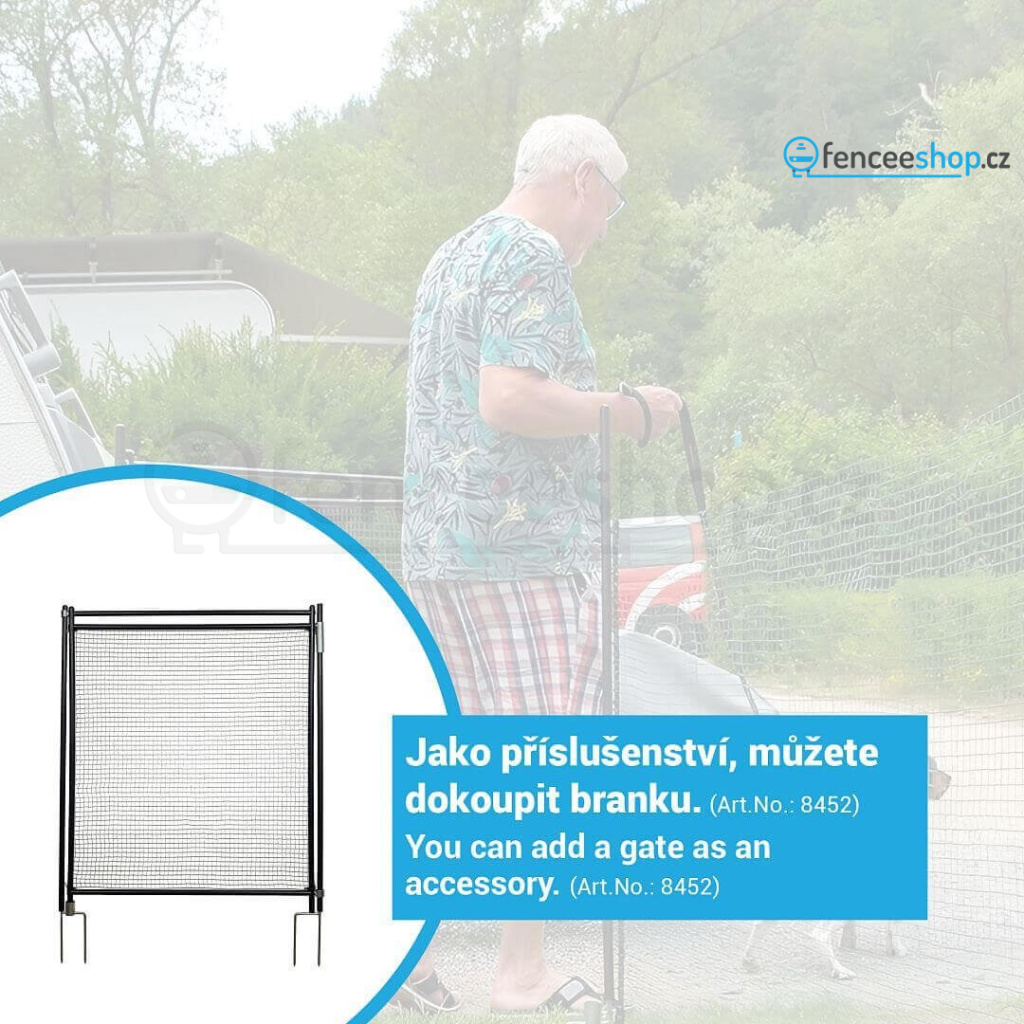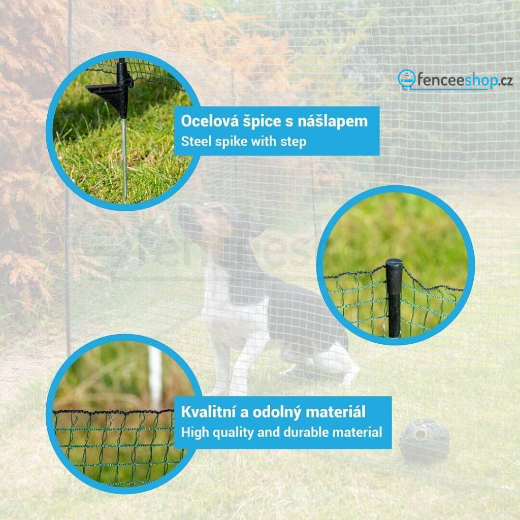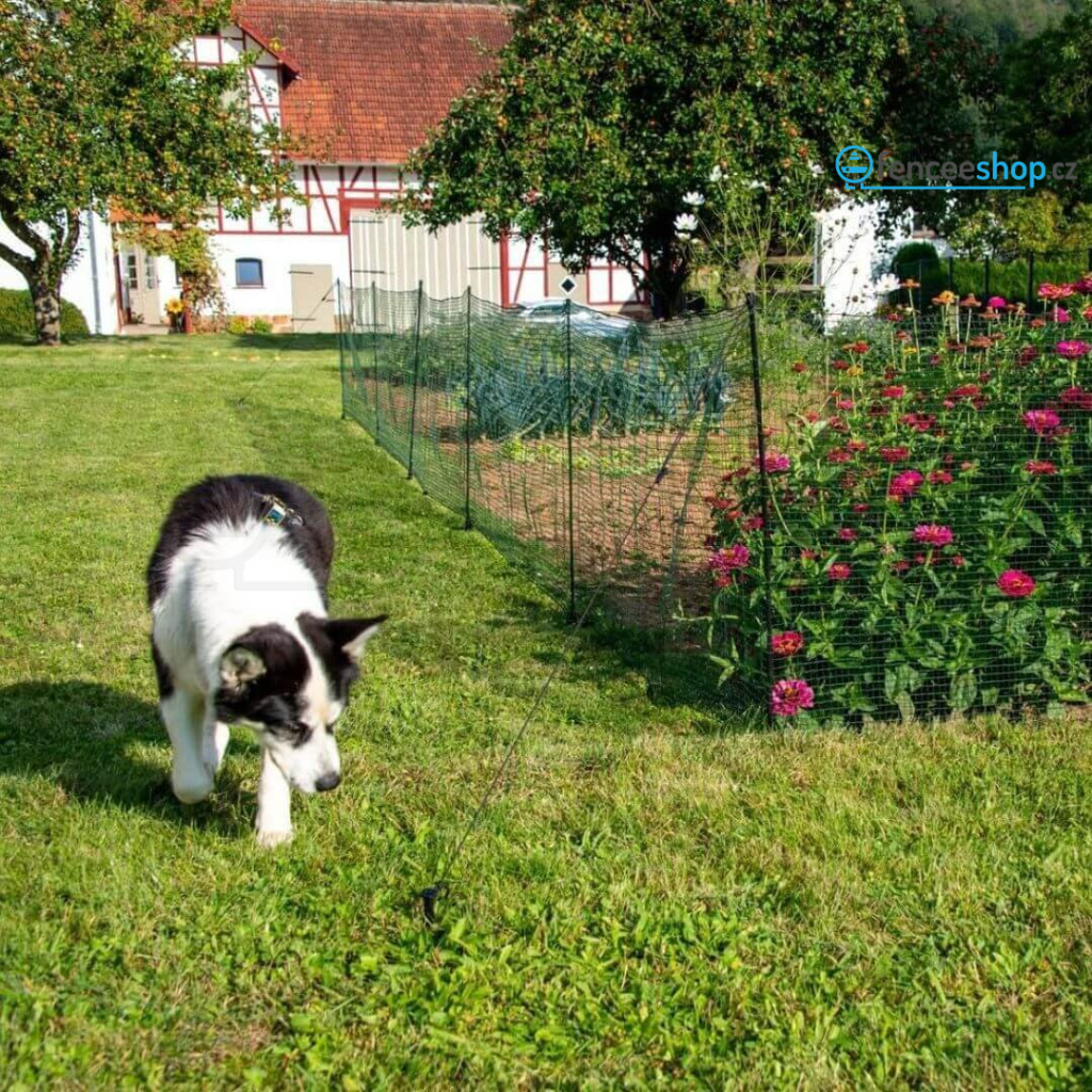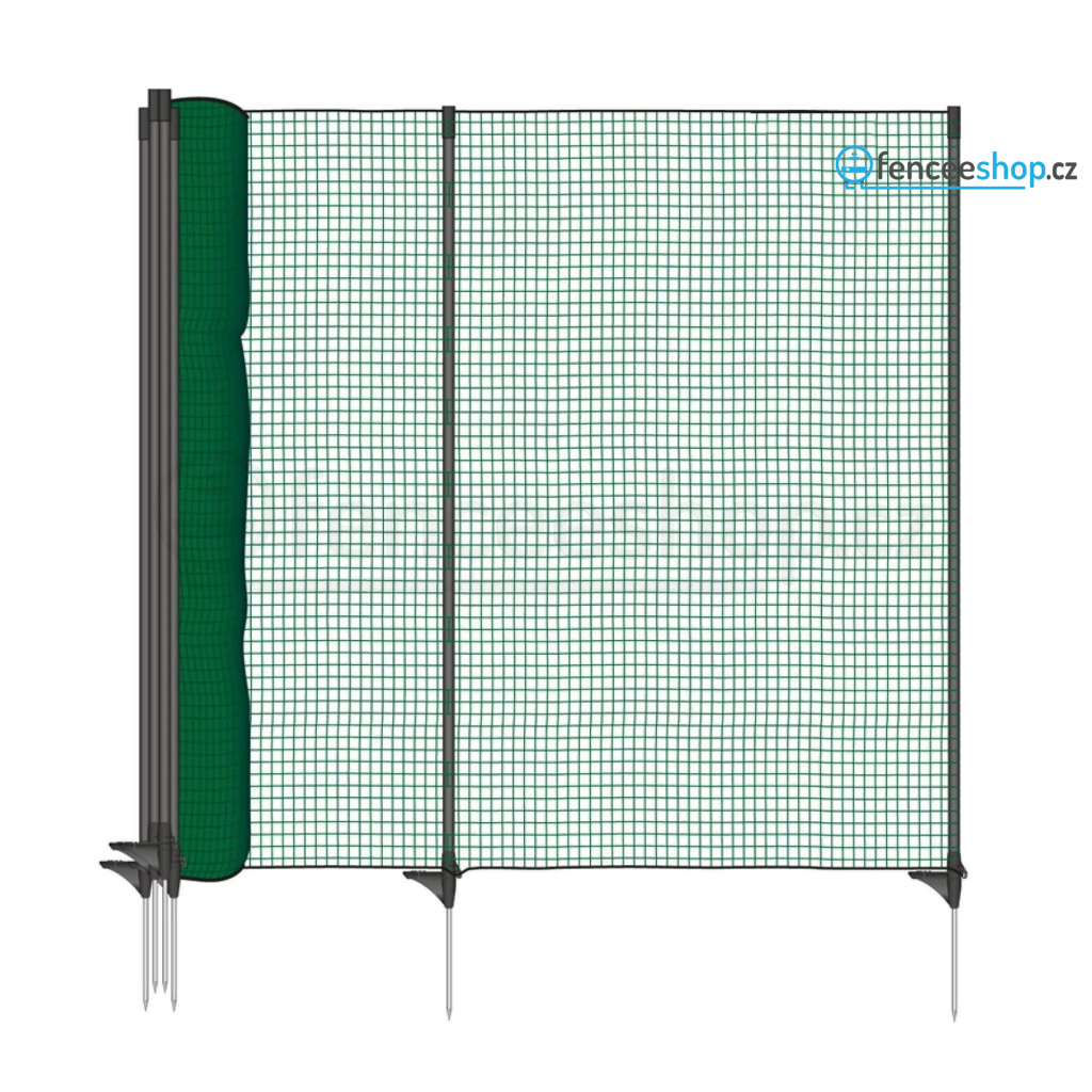 Fixní univerzální nevodivá síť pro vymezení a ochranu konkrétních ploch, záhonků, jezírek a rybníčků. Fixní rozteč 9 sloupků. Velmi jednoduché sestavení a demontáž. Neelektrifikovatelná hustě protkaná síť. Univerzální použití na zahradě k ochraně záhonků, k využití na dovolené v kempu nebo třeba jako ohradníková síť pro psy.