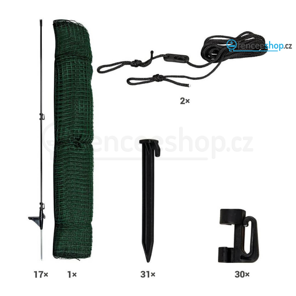 Kompletní sada ohradníkové nevodivé sítě s individuálním přizpůsobením v nerovnému terénu.