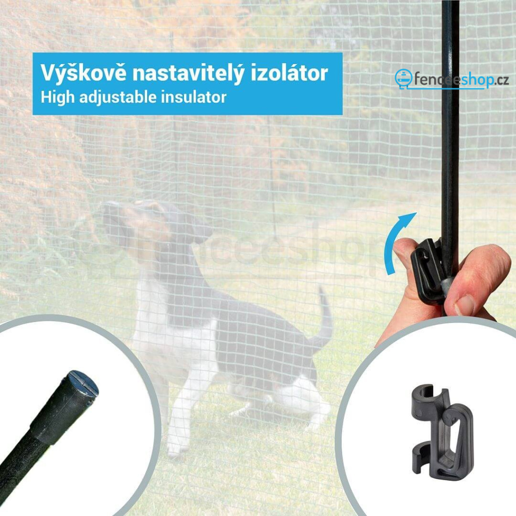 Velkou výhodou flexibilní sítě je libovolná rozteč sloupků a možnost posunout síť směrem nahoru během sekání trávy. Flexibilní nevodivá síť lze posunout nahoru, aniž byste pohnuli sloupky. Výškově nastavitelnými klipovými izolátory lze posouvat po celé délce sloupku a vy tak můžete libovolně měnit výšku sítě nad zemí.