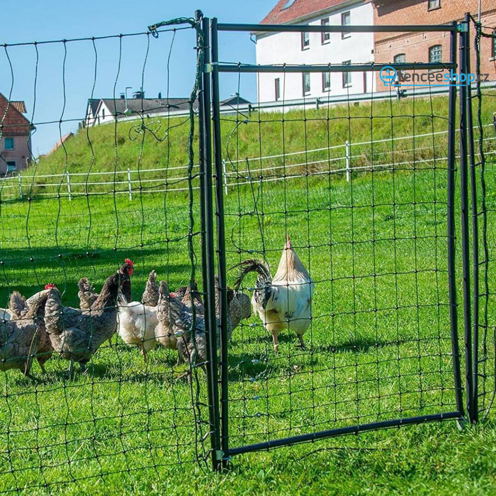 Vchodová branka pro elektrický ohradník pro rychlý, snadný a bezpečný přístup do ohrady z elektrických sítí bez nutnosti vypínat elektřinu. Ideální pro chov zvířat, jako jsou slepice, ovce a psi. Pevné tyčky s dvojitými hroty. Pro elektrické sítě s výškou 90 - 110 cm. Více informací
