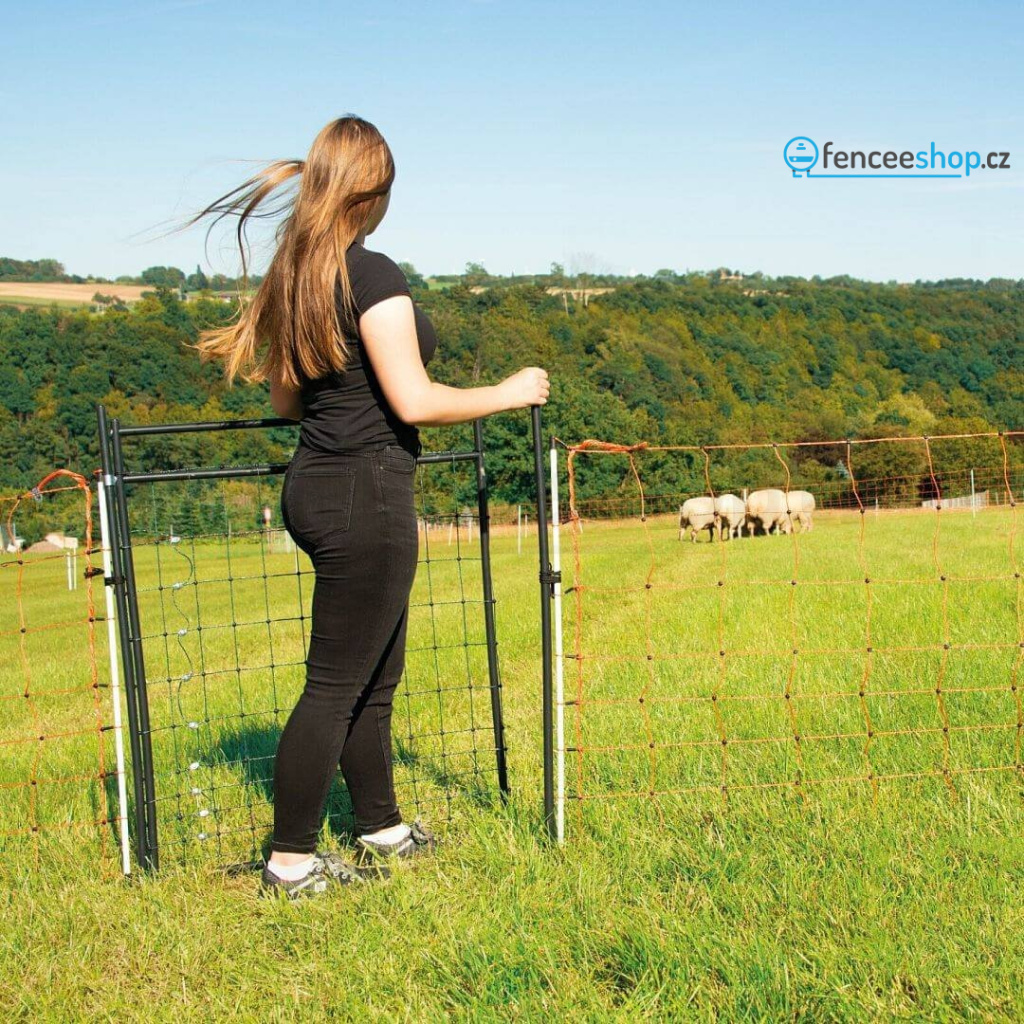Vchodová branka pro elektrický ohradník pro rychlý, snadný a bezpečný přístup do ohrady z elektrických sítí bez nutnosti vypínat elektřinu. Pro elektrické sítě 100 - 120 cm. Ideální pro chov zvířat, jako jsou slepice, ovce a psi. Pevné tyčky s dvojitými hroty. Více informací