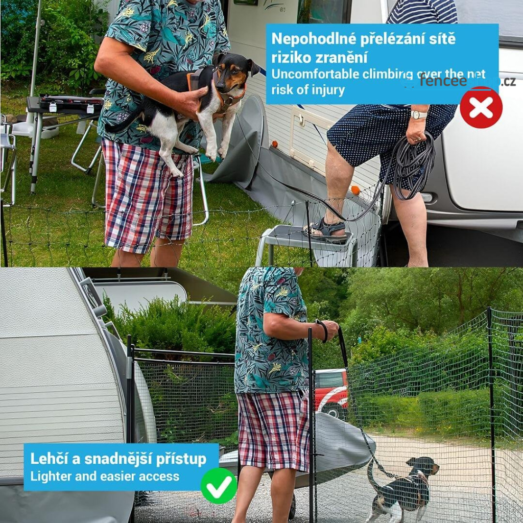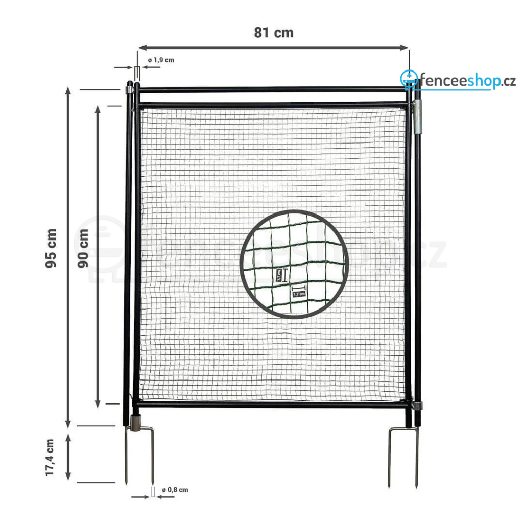 Rychlý a bezpečný přístup do oblasti pro sítě oplocení do výšky 90 cm. Ideální pro ohraničující ploty na zahradě a v kempu. Ochrana proti rozbití díky menší velikosti ok ve spodní části sítě. Nekomplikovaná a rychlá montáž. Nevodivá - nelze elektrifikovat. Více informací