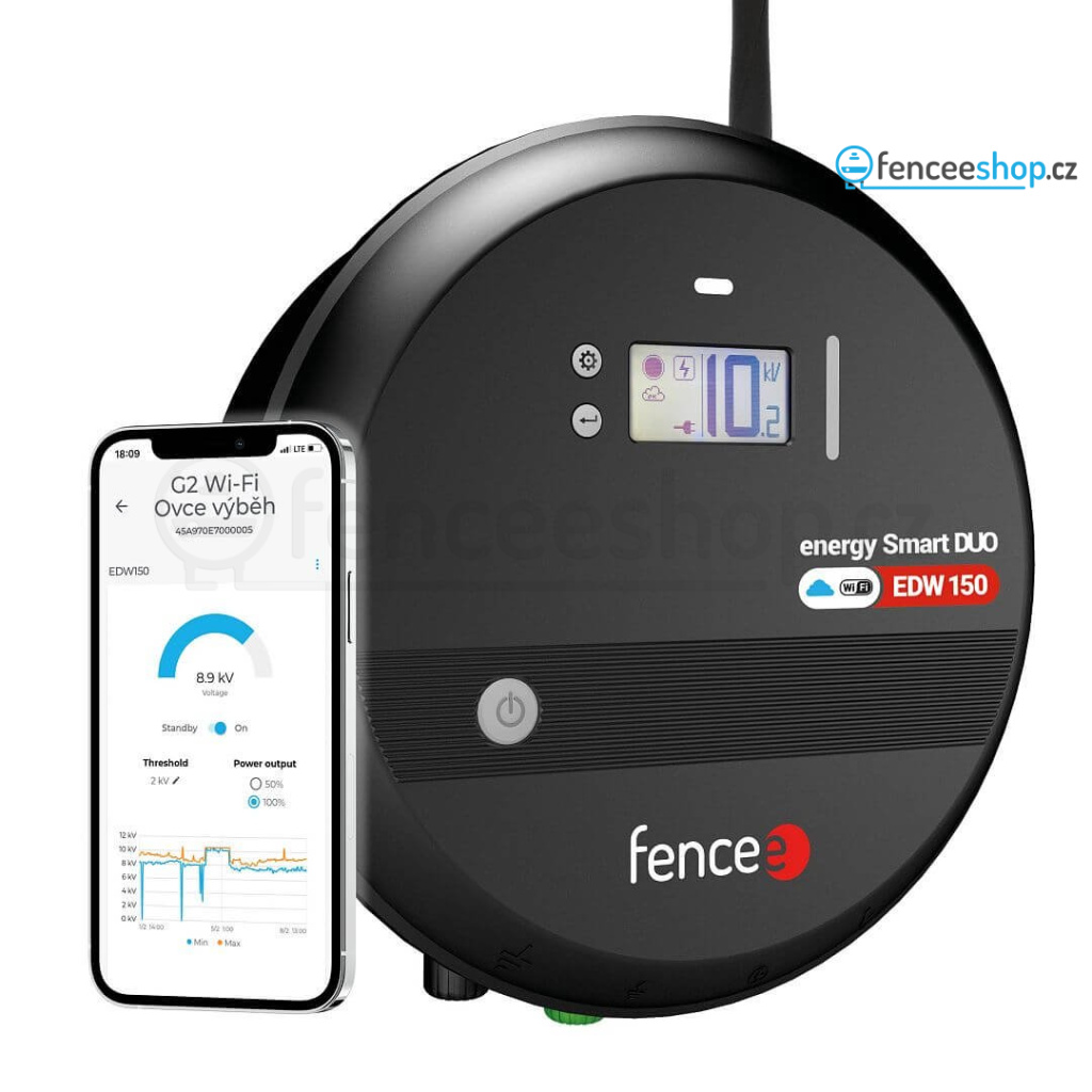 Chytrý Wi-Fi generátor EDW stačí jednoduše připojit přímo na router 2,4 GHz. Generátor odesílá získaná data přímo do cloudu, který je shromažďuje a směruje do mobilního telefonu. Cloudové řešení umožňuje vzdálené ovládání a kontrolu ohradníku odkudkoliv bezplatnou aplikací fencee Cloud. Tu lze použít také na tabletu nebo v prohlížeči na PC. Neomezené ovládání. Bez dalších nákladů. Zabezpečení bezdrátové sítě WPA2 – PSK / WEP.