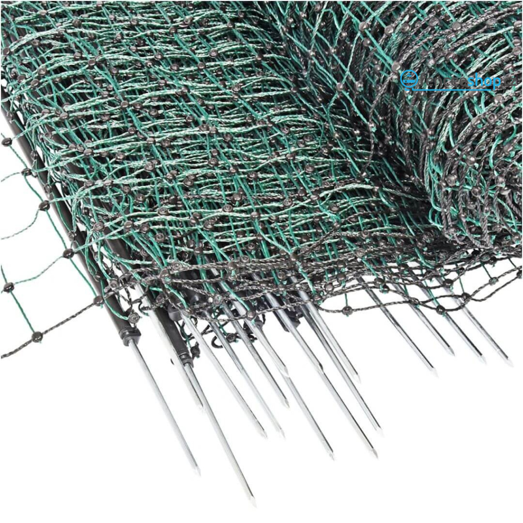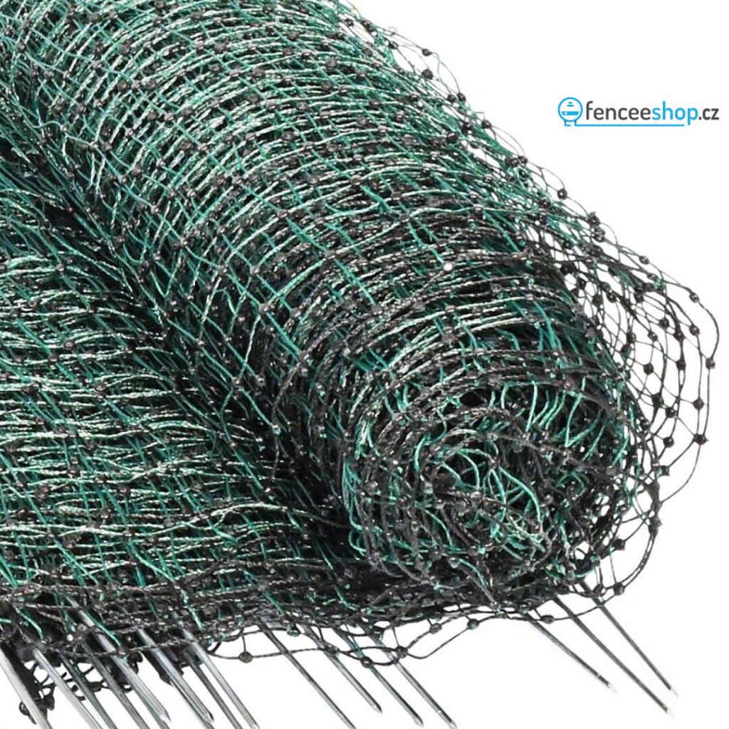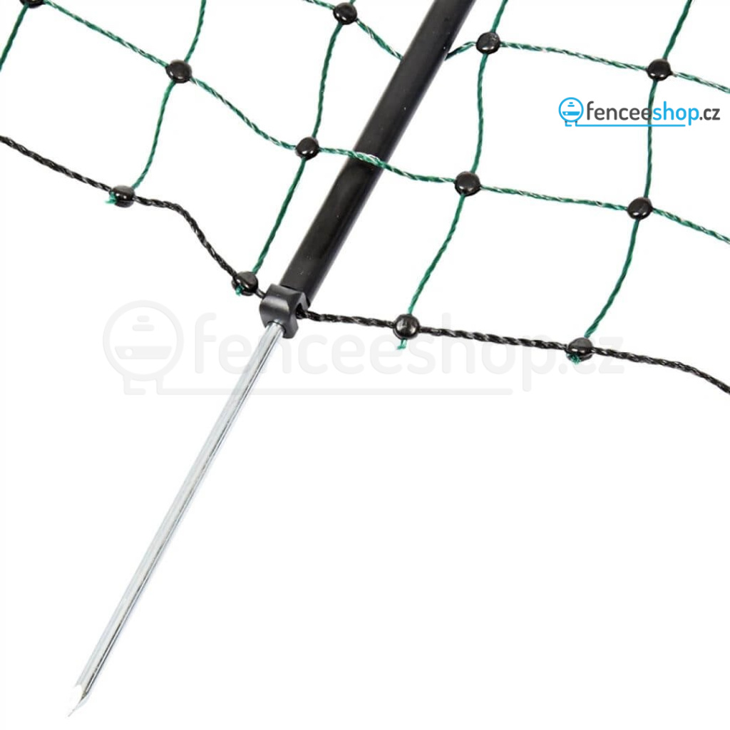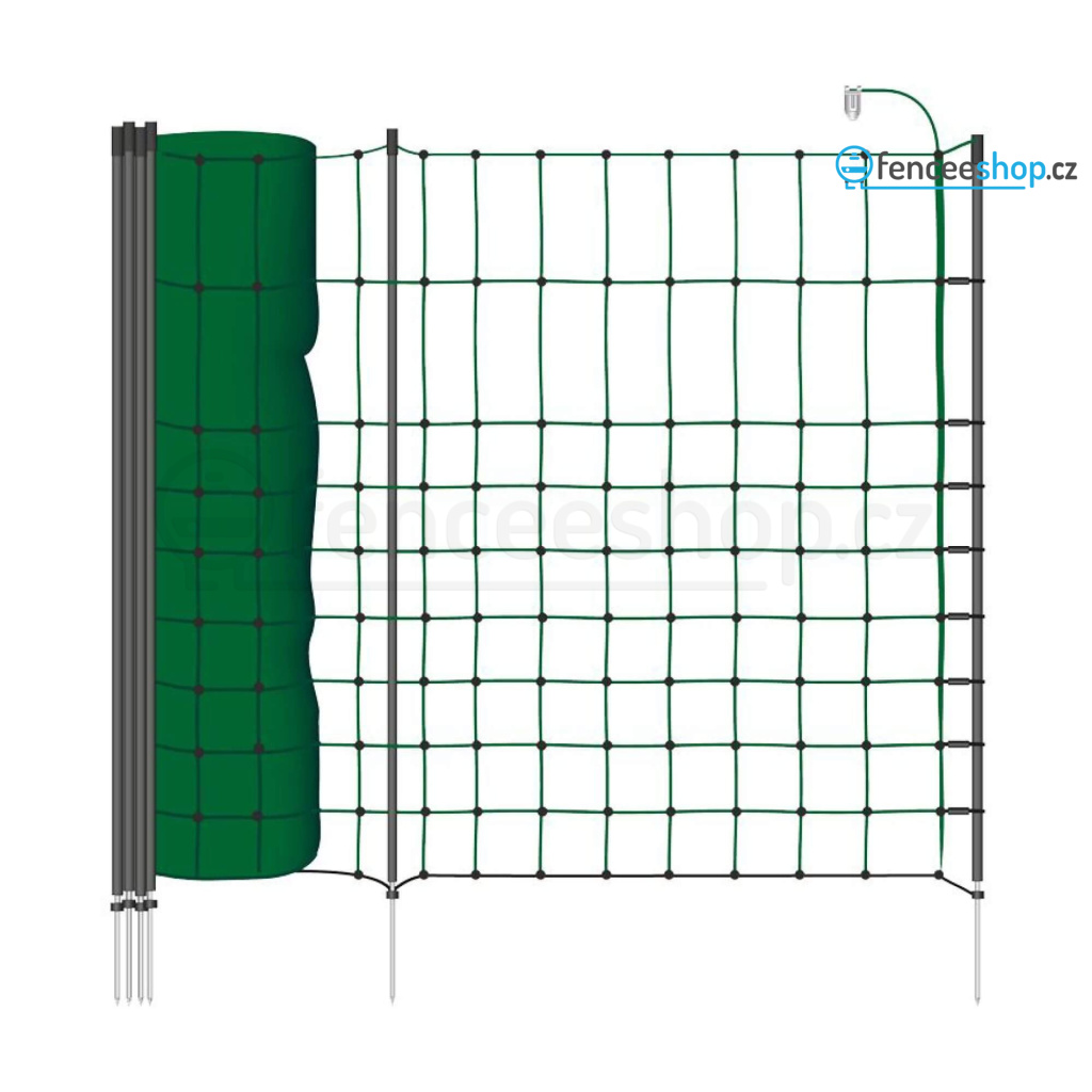 Síť pro elektrický ohradník v délce 25 m pro psy, králíky a kočky. Obsahuje celkem 9 tyčí s jednoduchým hrotem a 10 vodorovných vodivých lanek s 3 × 0,20 mm nerezovým vodičem + 1 spodní řada (černé lanko) je nevodivé, izoluje. Včetně sady na opravu sítě. Více informací